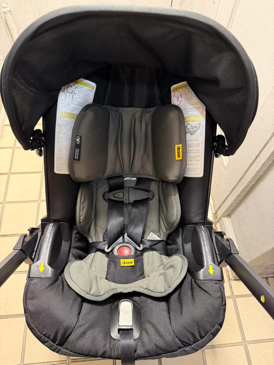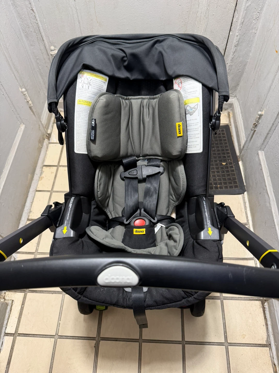 15Selling a Doona infant car seat and stroller combo in black. This is a convenient and safe option for transporting your little one. It easily converts from a car seat to a stroller, making it perfect for travel and everyday use