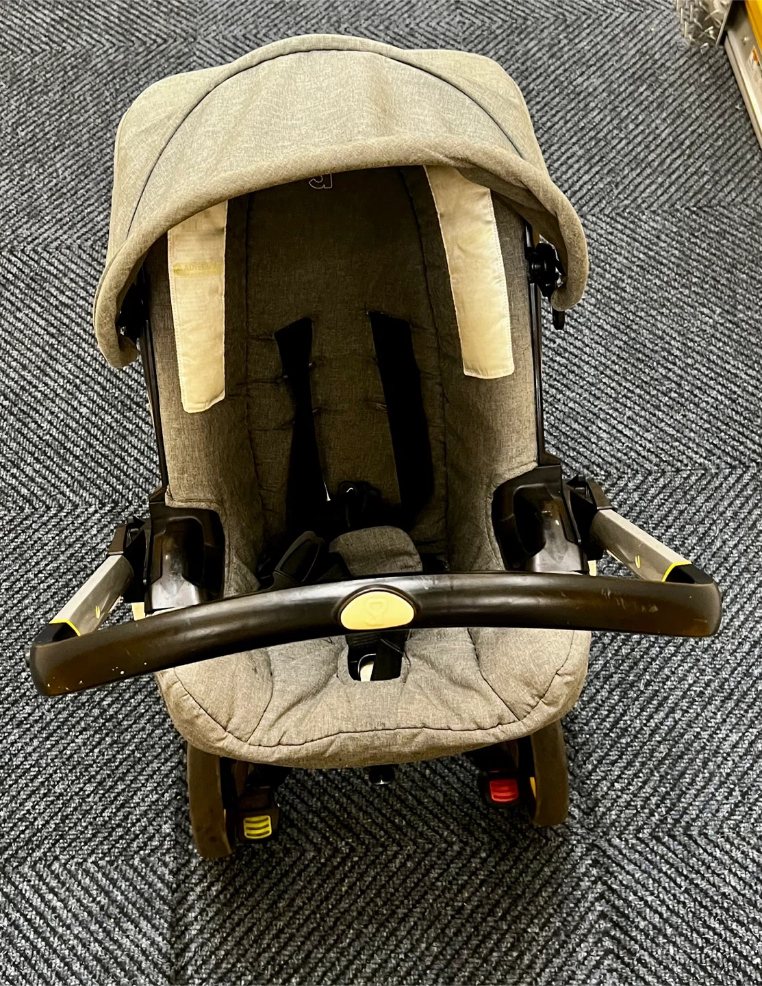 Selling a Doona infant car seat and stroller combo in gray. It's a super convenient system that easily converts from a car seat to a stroller. Perfect for parents on the go!