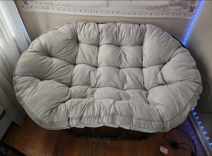 Selling a Double Papasan chair with the cushion included! It's super comfy and great for relaxing. The chair frame is sturdy, and the cushion is soft and plush. Perfect for adding a cozy touch to any room!