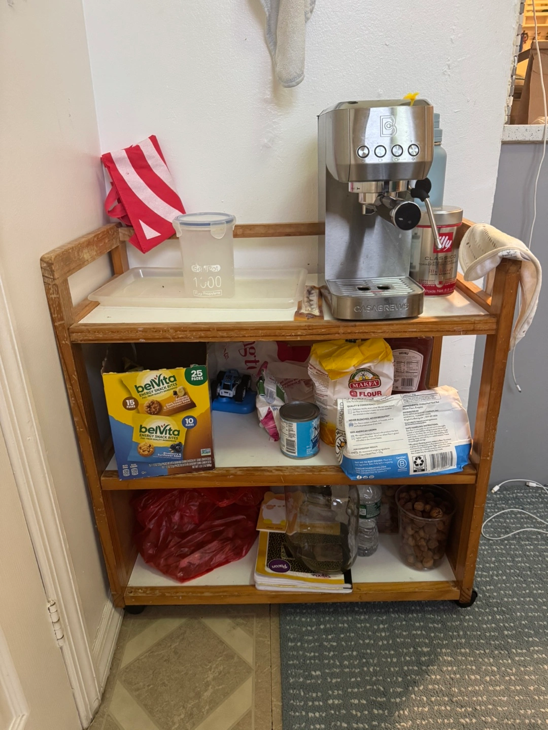 Selling a rolling kitchen cart. It's a great way to add some extra storage to your kitchen or pantry. It has three shelves and rolls smoothly. Perfect for organizing your kitchen essentials!