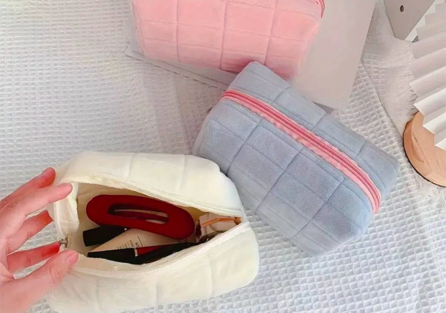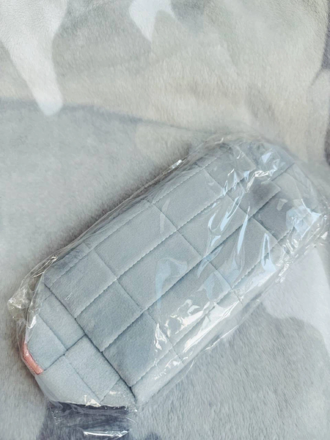 Soft quilted velvet pouch. Zipper closure. Perfect for travel or everyday use.