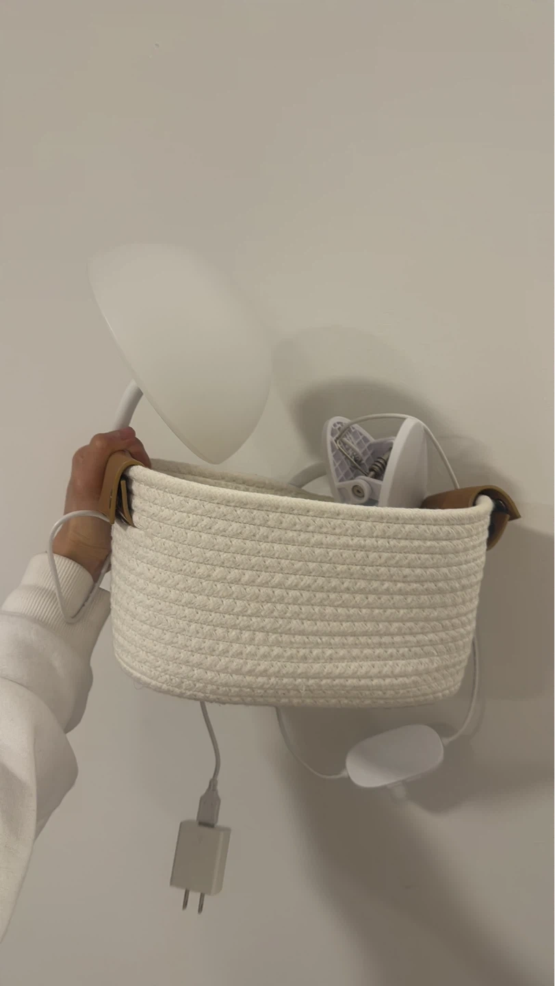Mushroom lamp + White Woven Rope Storage Basket with Handle