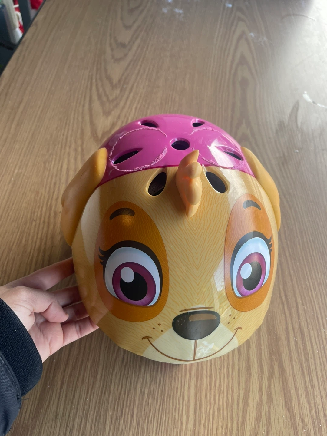 Paw Patrol Skye helmet for kids. Features pink straps and adjustable sizing. It's suitable for younger children for cycling or scootering.