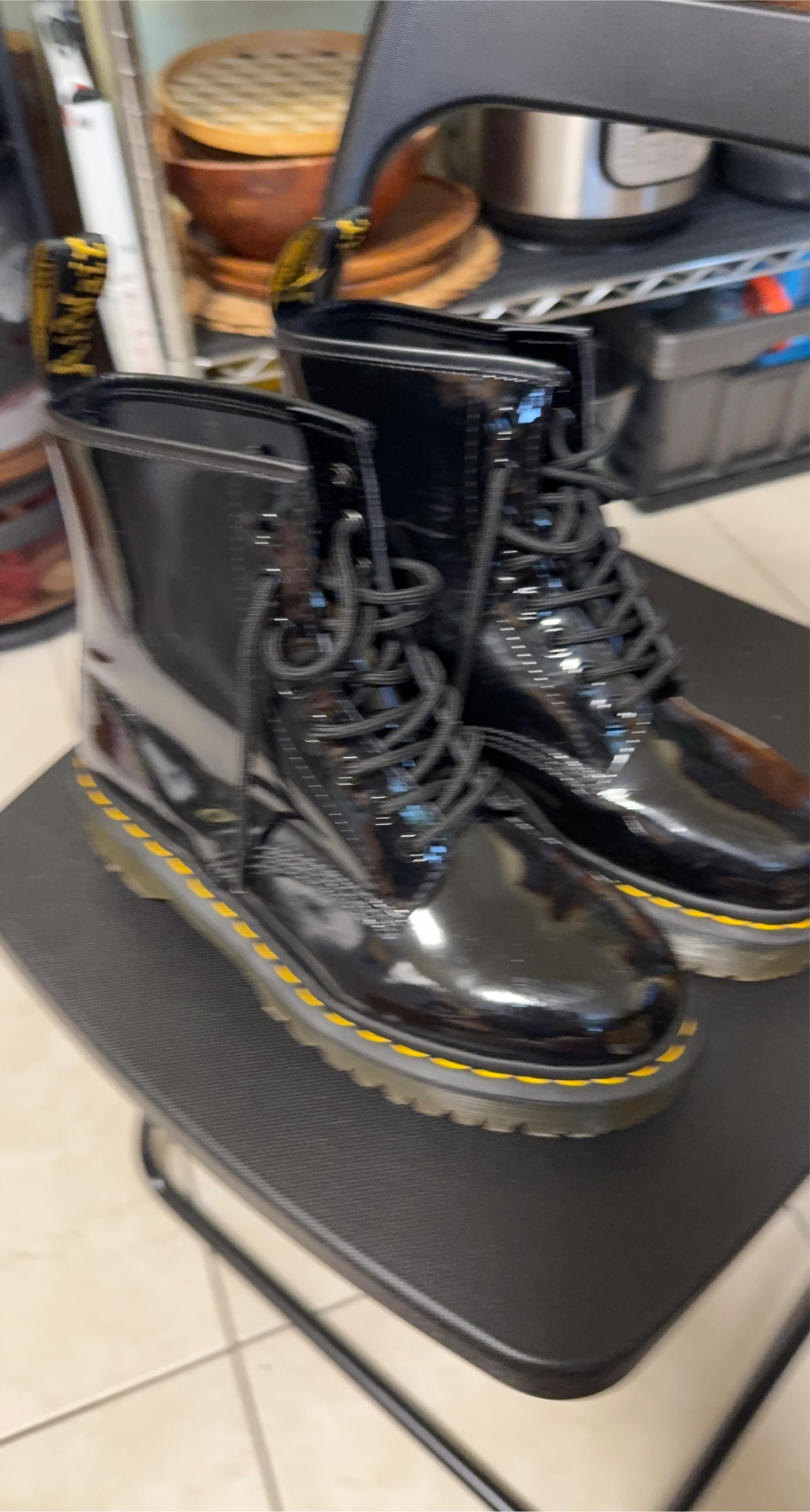10Selling a pair of Dr. Martens 1460 boots in black patent leather. They're in great condition and ready for a new home! The classic design and durable construction make them a stylish and practical choice. Just have small scratches infront