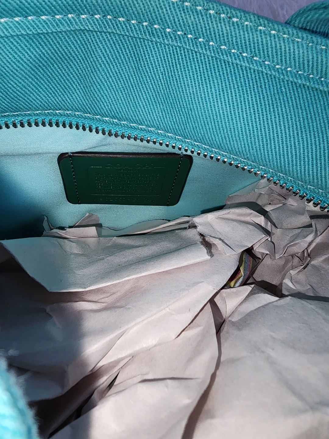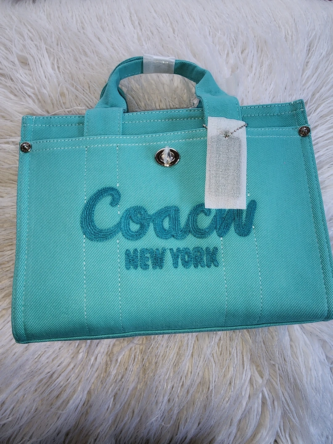 Coach New York canvas tote bag. Tiffany Blue color with "Coach New York" embroidery. Includes dust bag.