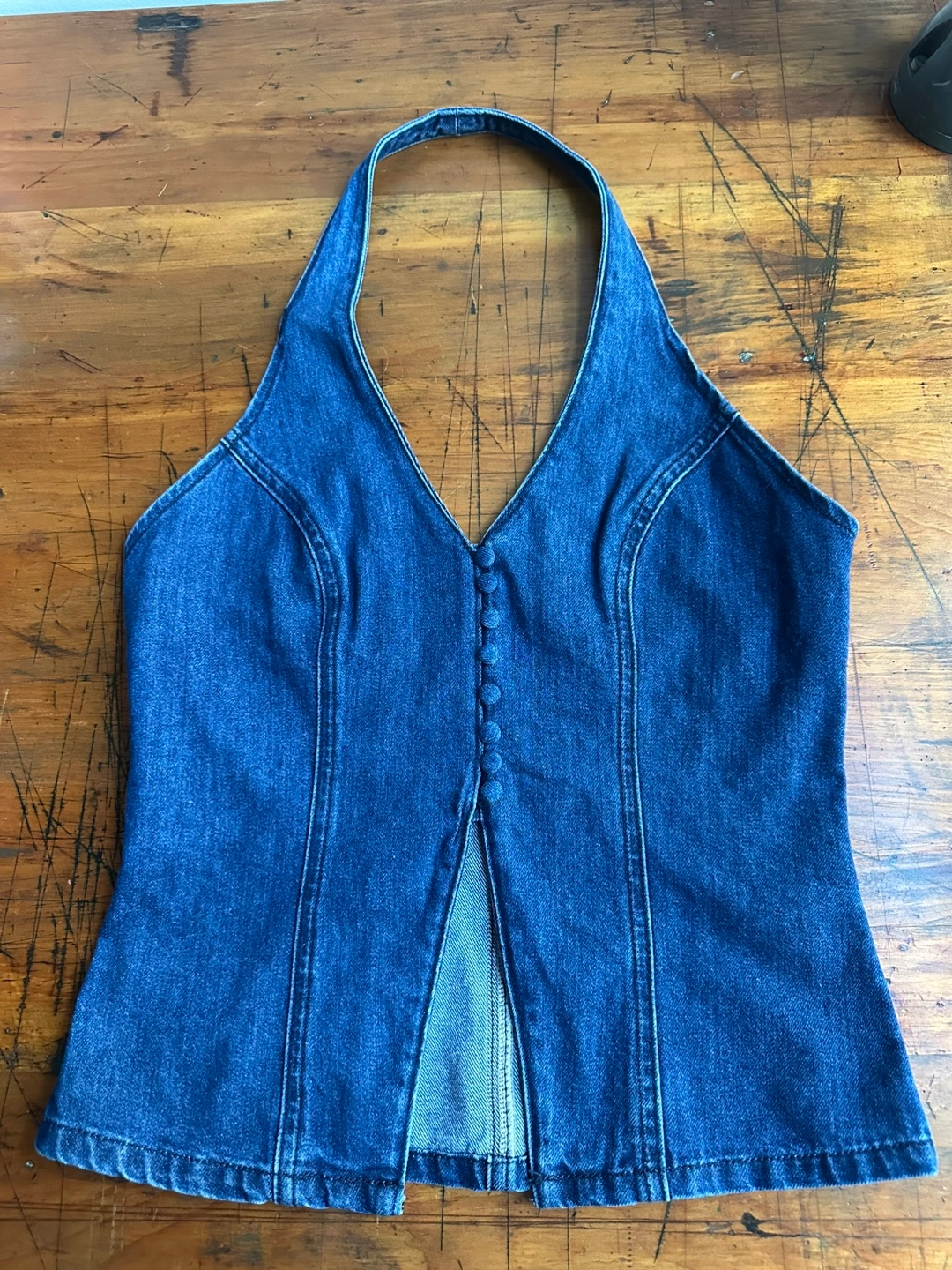 NEW Commense Blue Denim Halter V-Neck Top with Button Detail size Medium