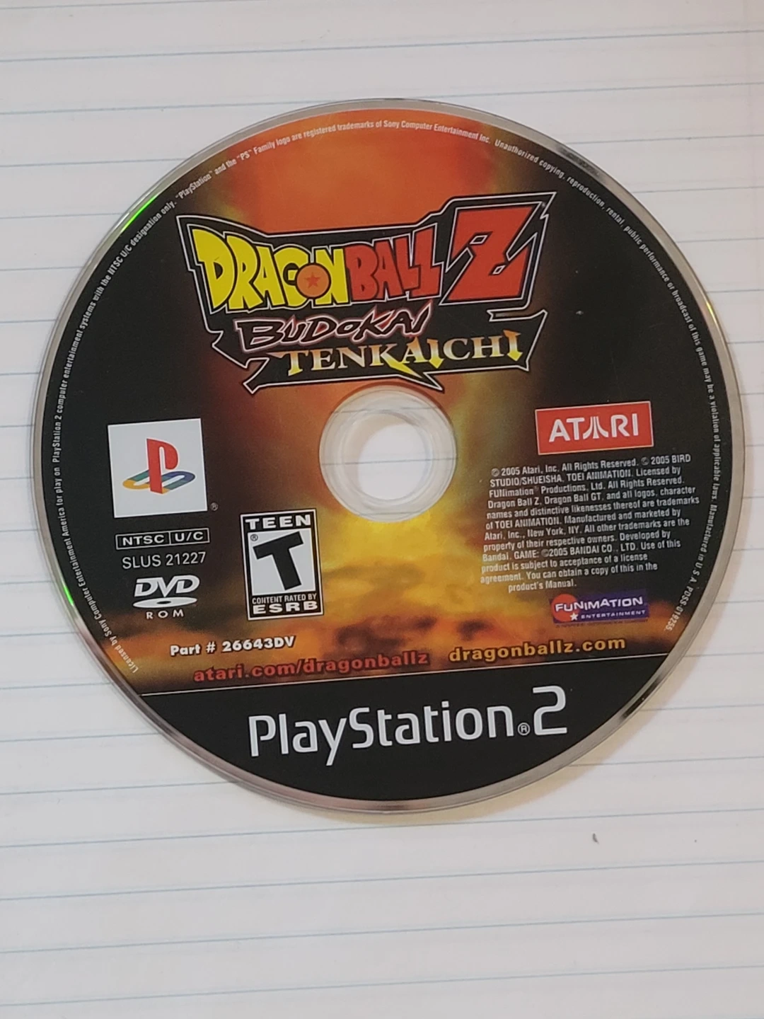This is the Dragon Ball Z: Budokai Tenkaichi video game for the PlayStation 2. It's rated T for Teen. Included is the game disc.