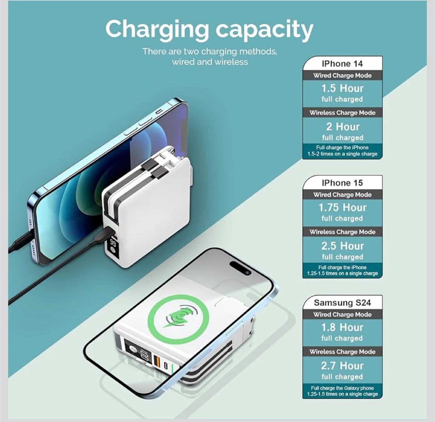 • Product Functionality: A 5-in-1 charging solution that serves as a power bank, wall charger, and wireless charger.