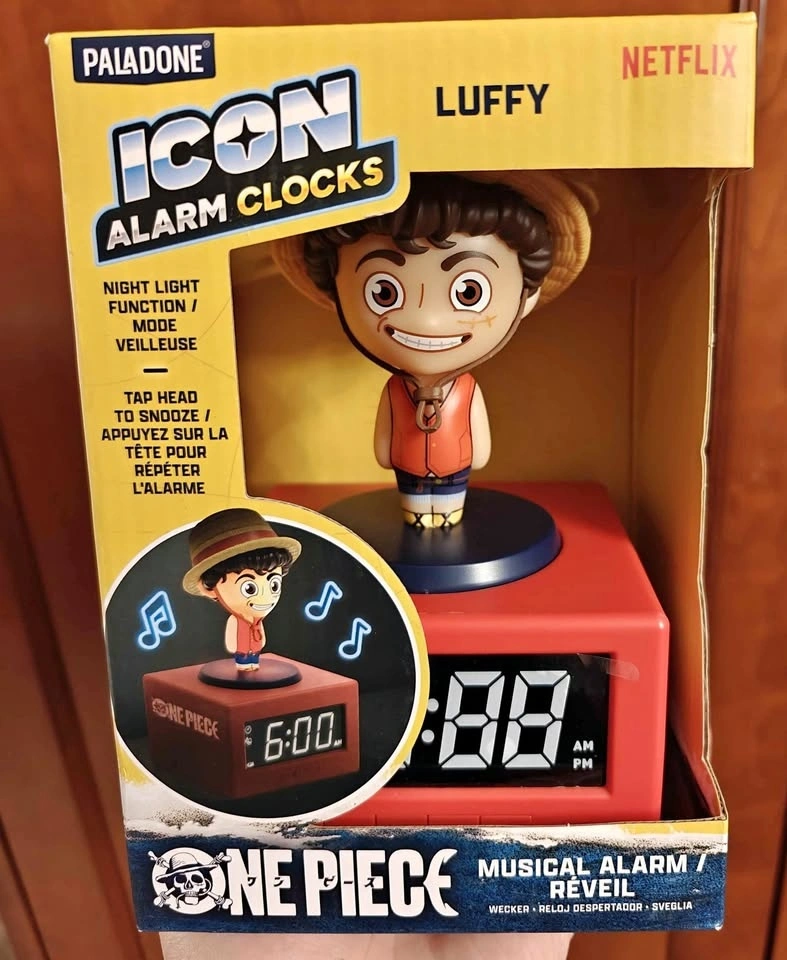 Icon Alarm Clock featuring Luffy from One Piece (Netflix version). Music alarm & night light. Tap head to snooze. Official licensed product. Great gift for anime fans. Brand New.