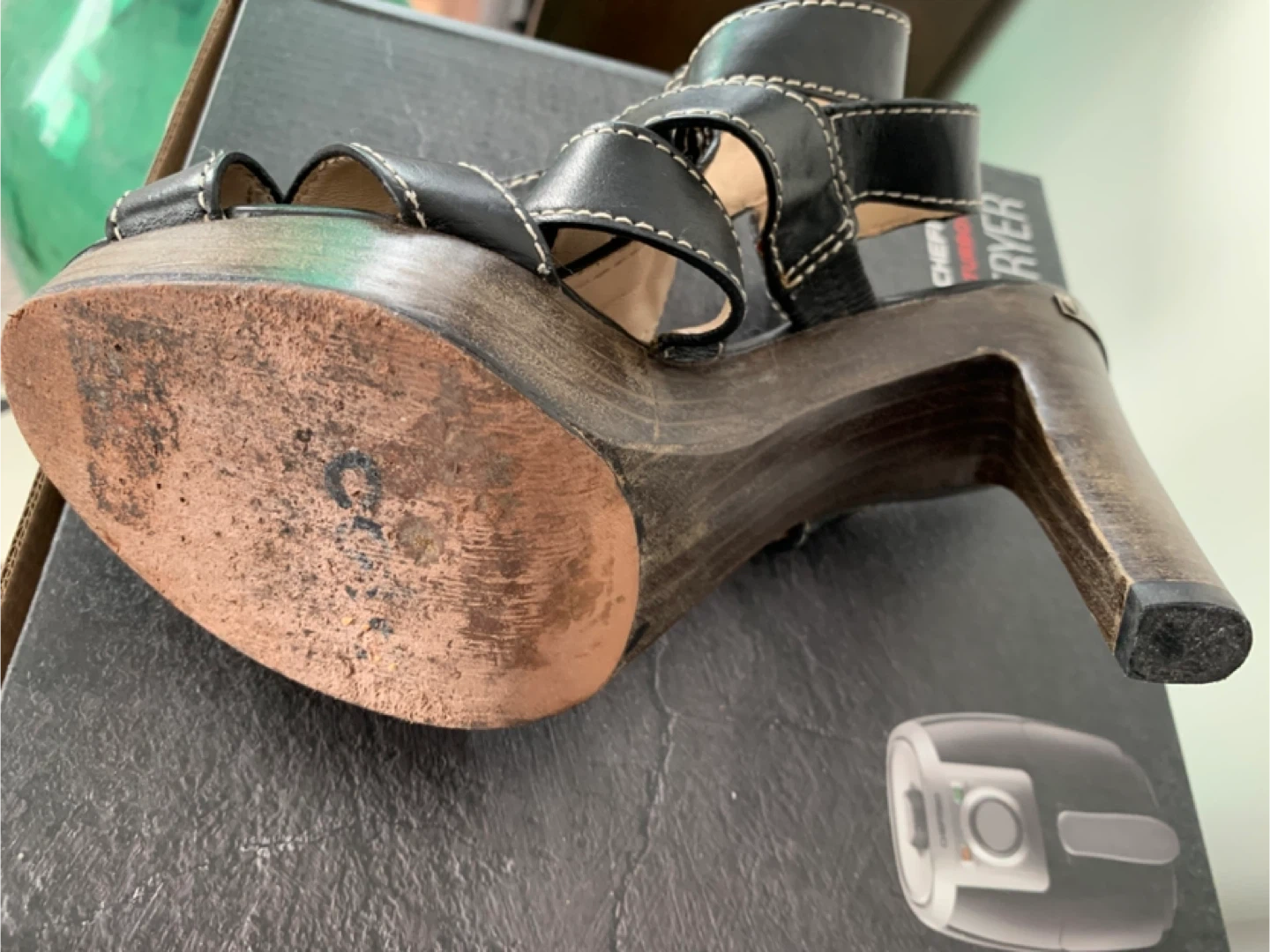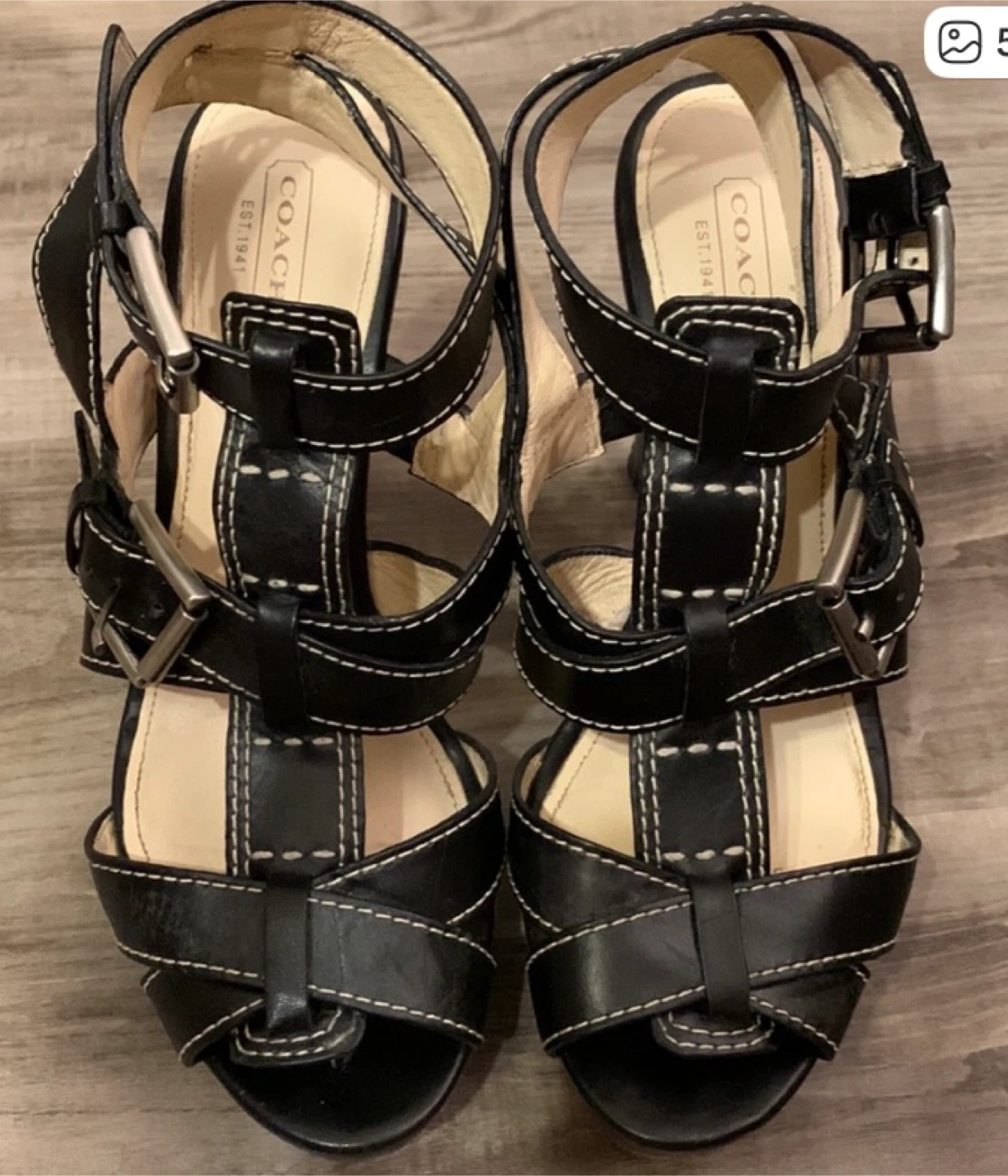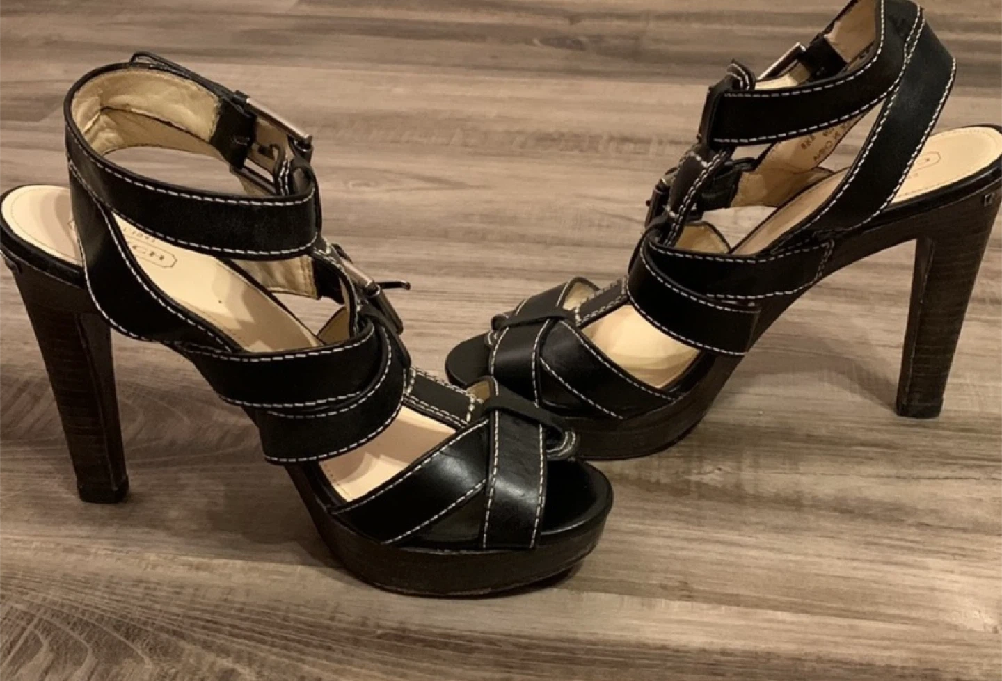 Coach Black Leather Strappy Platform Heeled Sandals