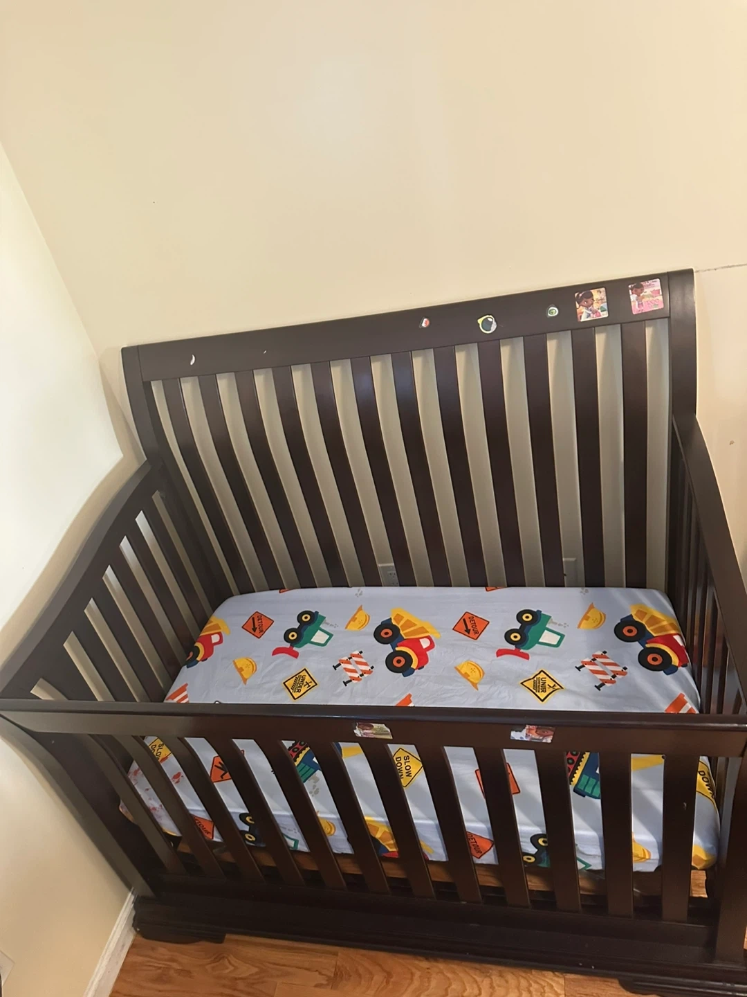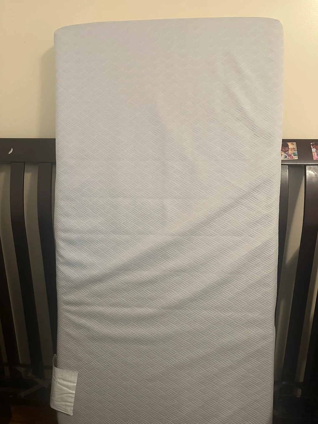 Selling a baby crib mattress with a 2-stage dual firmness design! It features a firmer foam side for infants and a memory foam side for toddlers. The dimensions are 52 inches x 27 inches x 4.7 inches. The mattress cover is removable and machine-washable, with a waterproof sleep surface that is easy to clean. The crib is also available for sale, going for $60 and is negotiable, thanks.