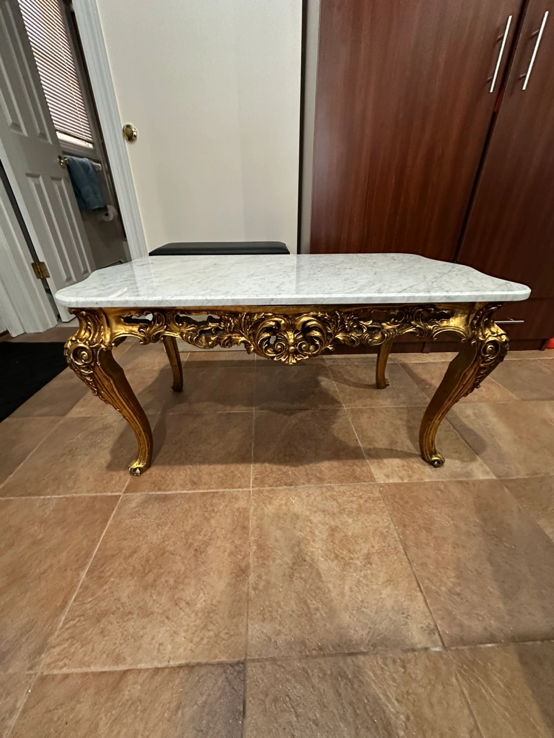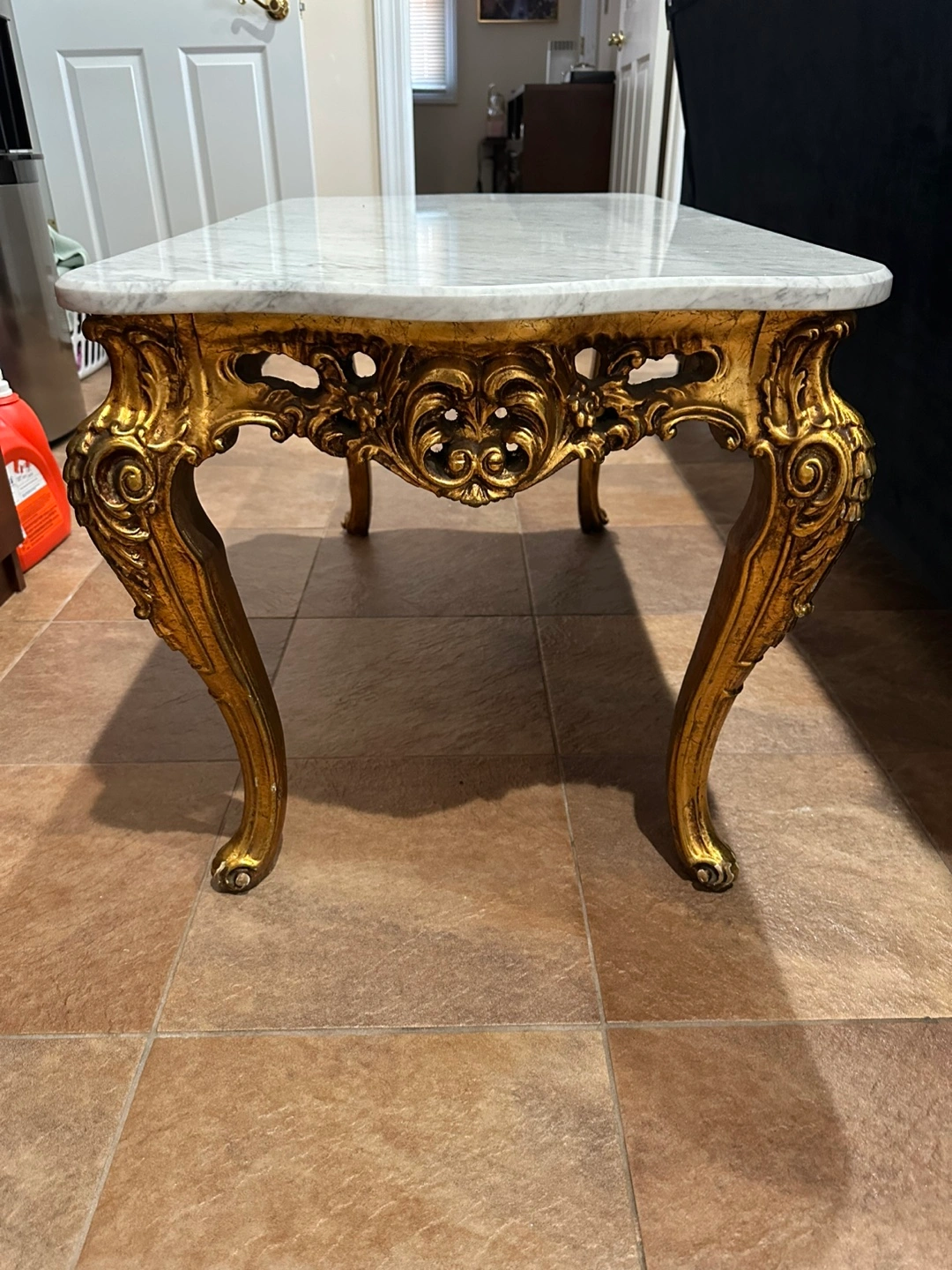 Ornate Gold Marble Top Coffee Table
