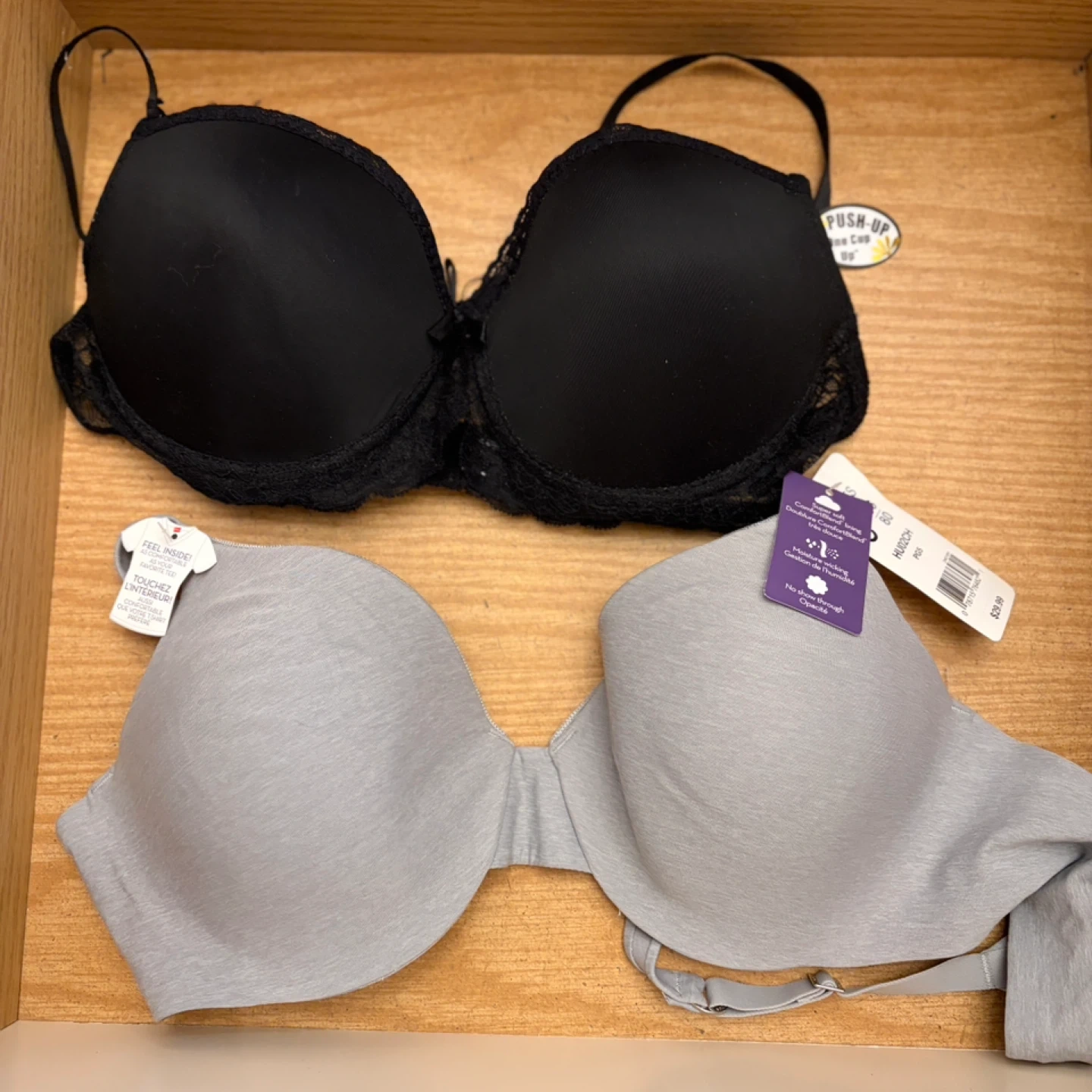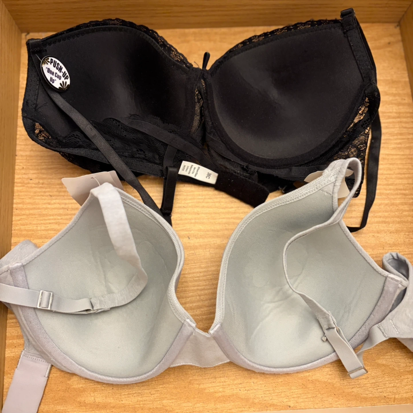 Two Bras: Black Push-Up & Grey Strapless