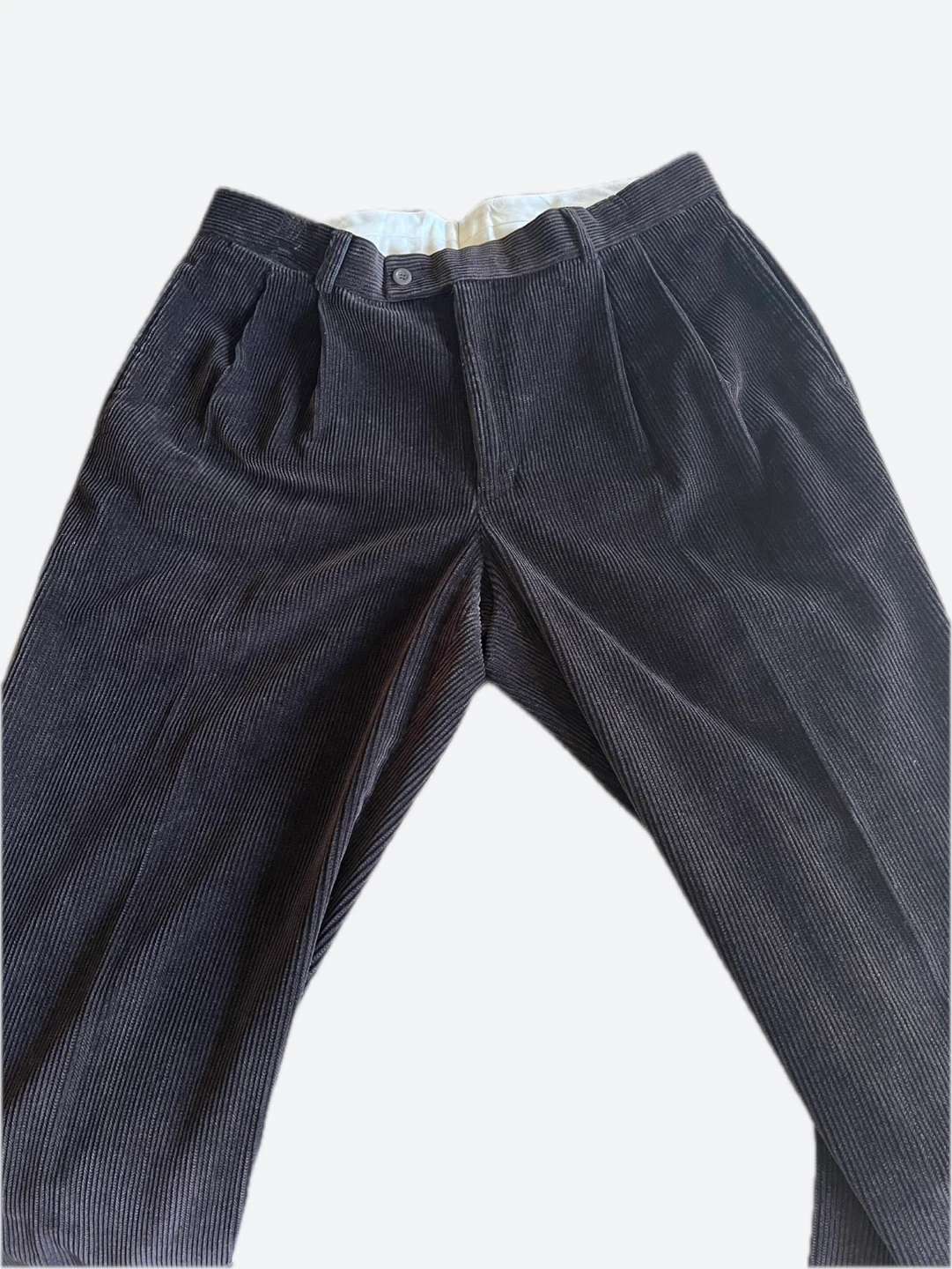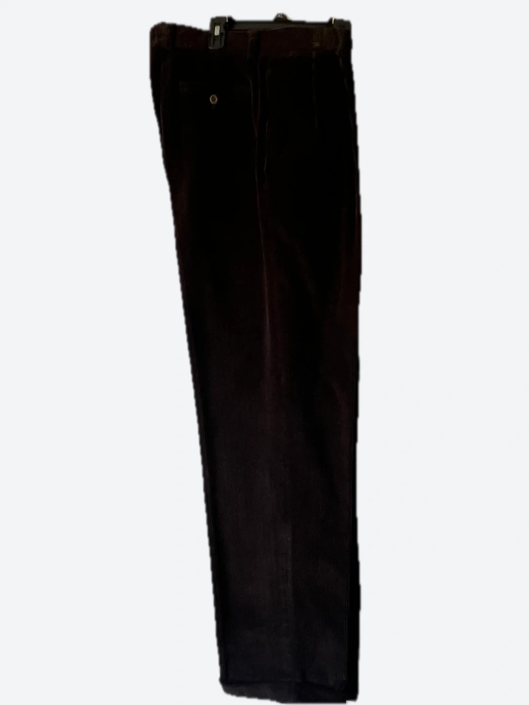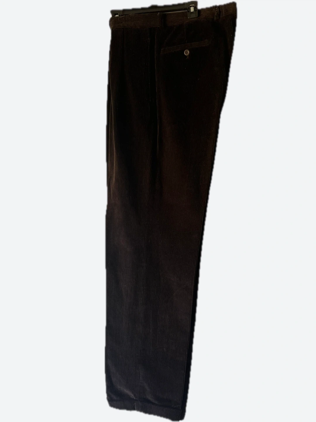 Dark Brown corduroy pants by Braggi by Louis Raphael. These pants feature a classic pleated front and button closure. They're made from comfortable corduroy fabric. Sz 36X34. Like new condition