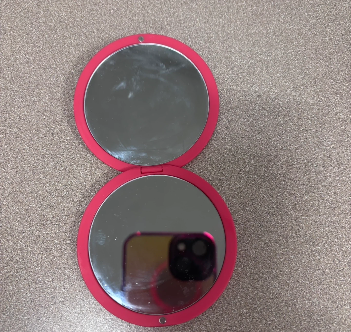 Barely Use any more: This is a compact mirror by Ever Eden. It's a double-sided mirror, perfect for on-the-go touch-ups. The outer casing is a vibrant pink.