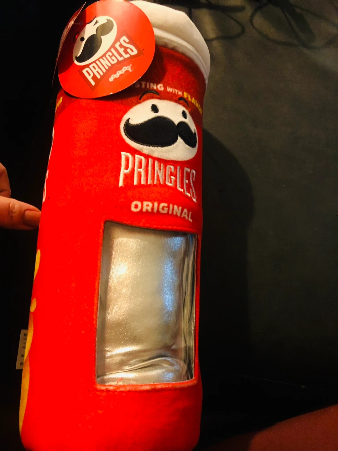 🥕✨ONLY $6!!! 🌟This NEW Pringles Original plush can is bursting with flavour, just like the real chips! It's in great condition and ready to add some fun to your space. Originally bought for $30.00!!! Has a special area to put cool stuff display window as well!!!!