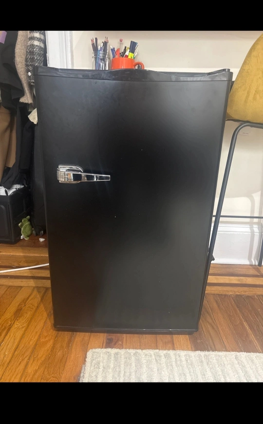 Selling a mini freezer in black! It's in good condition and perfect for a dorm, office, or small space. Has a retro-style chrome handle. Great for keeping meats or ice cream cold.