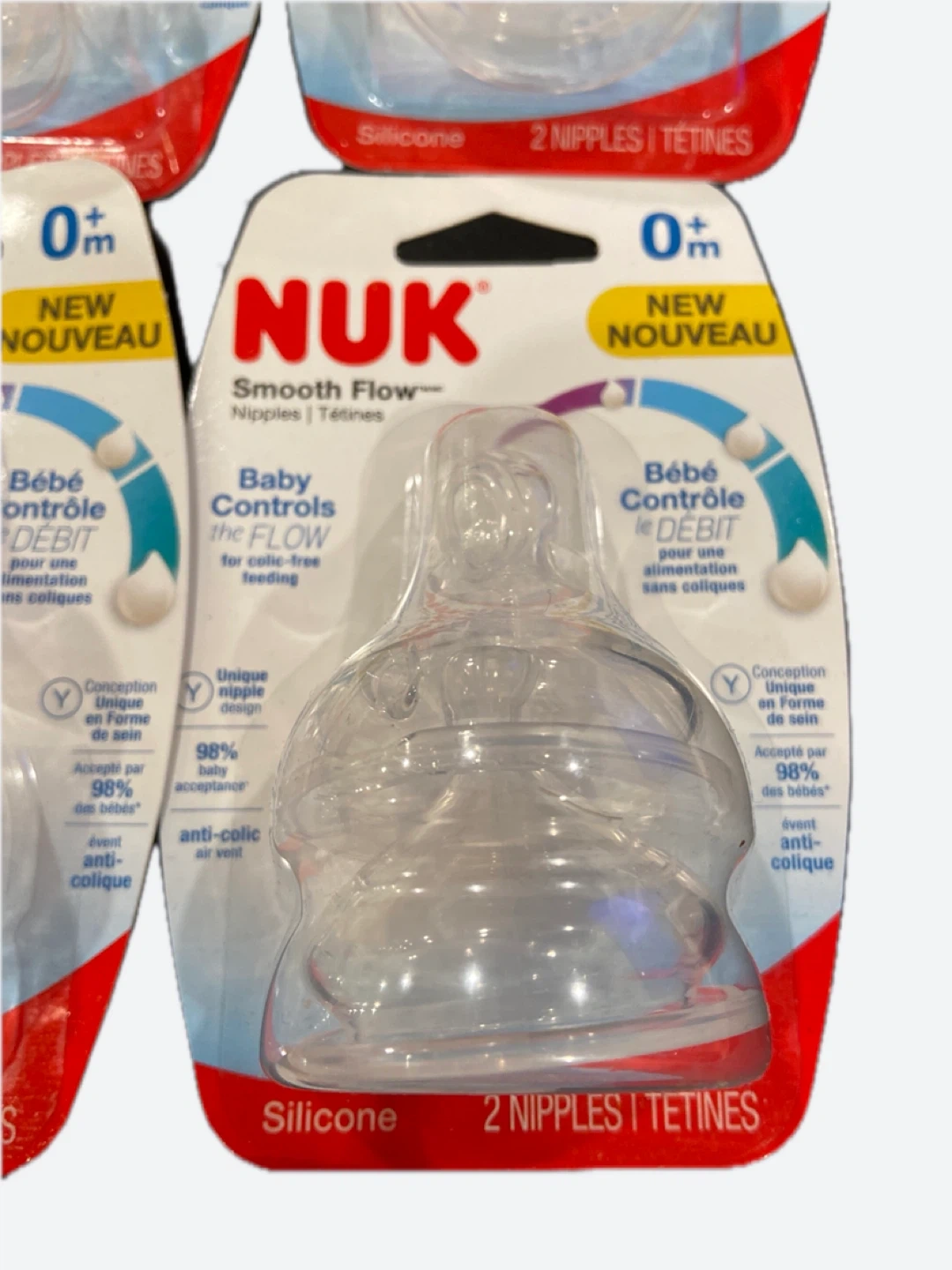 NUK Smooth Flow Silicone Nipples (0+ Months) - 2 Count