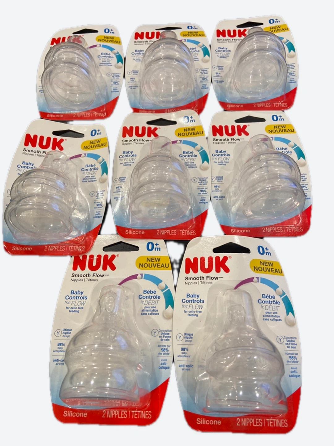 These NUK Smooth Flow silicone nipples are designed for 0+ months babies. They feature a unique nipple shape and baby controls the flow for colic-free feeding. Two nipples are included in this package.