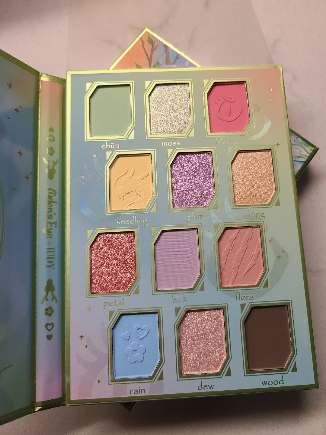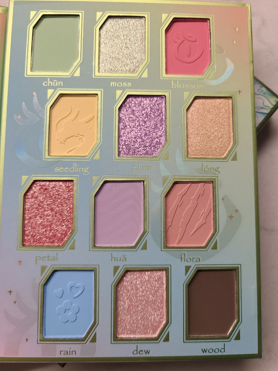 This is the Oden's Eye Spring Dragon Palette, a collaboration with JUDY. It features 12 eyeshadow shades with a variety of finishes.