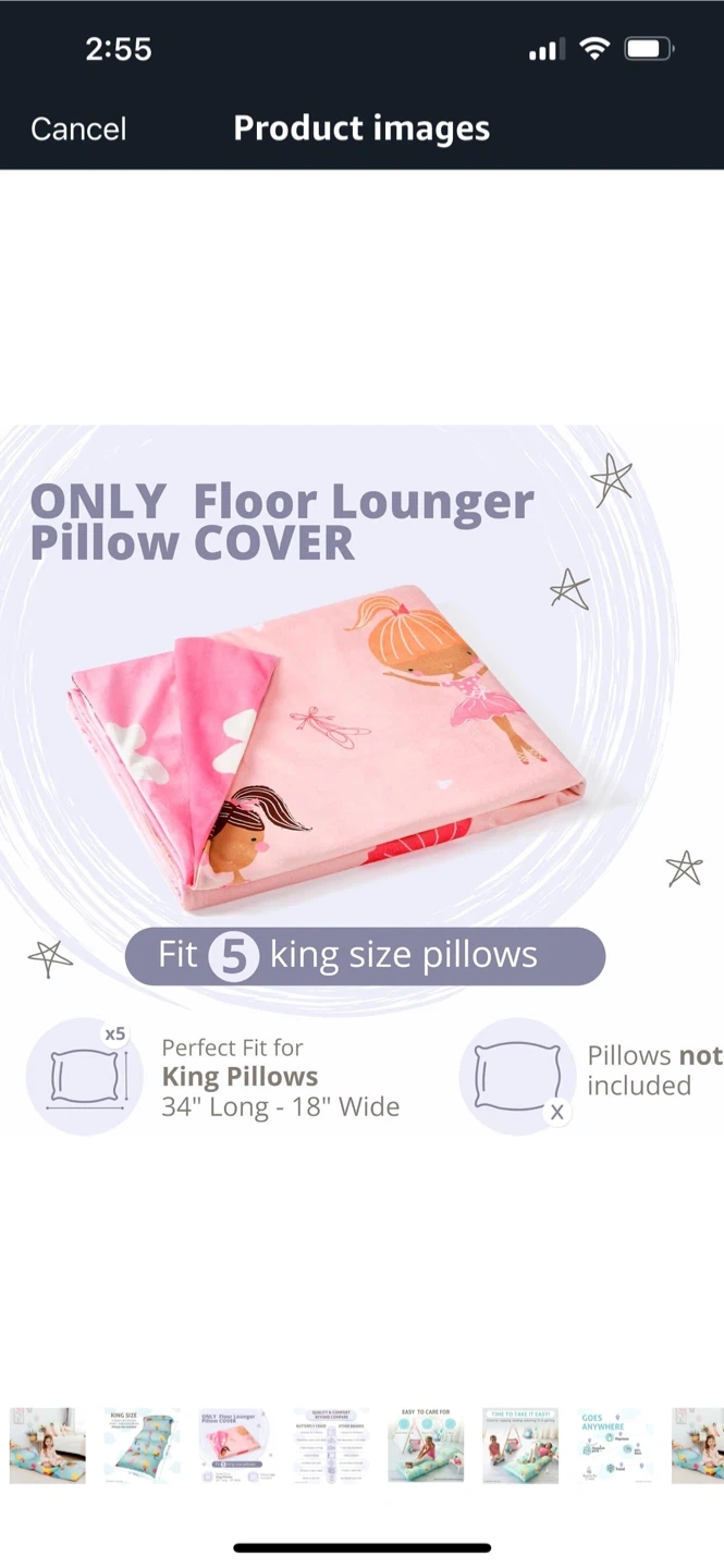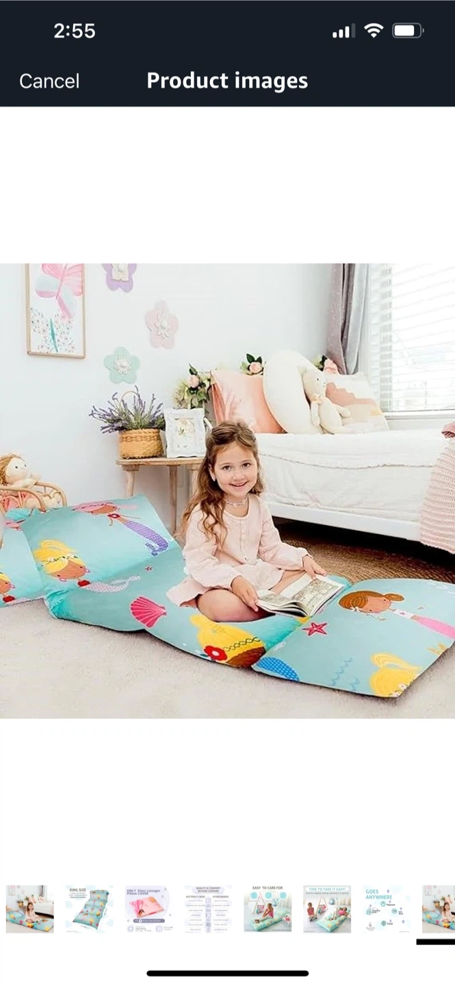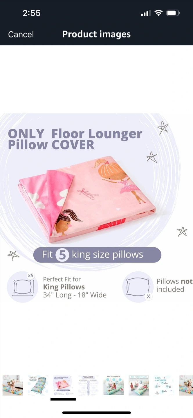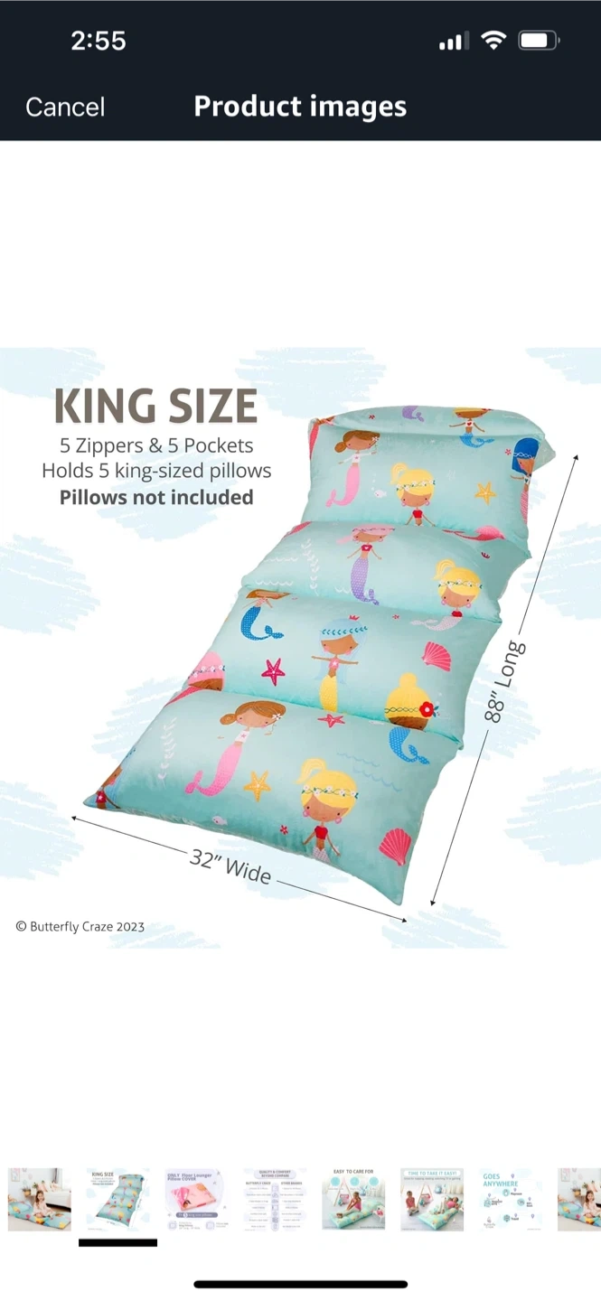 This new Butterfly Craze mermaid pillow lounger is king size! It has 5 zippers and 5 pockets and holds 5 king-sized pillows. The lounger is 88" long and 32" wide. Perfect for sleepover parties, playrooms, or even travel!