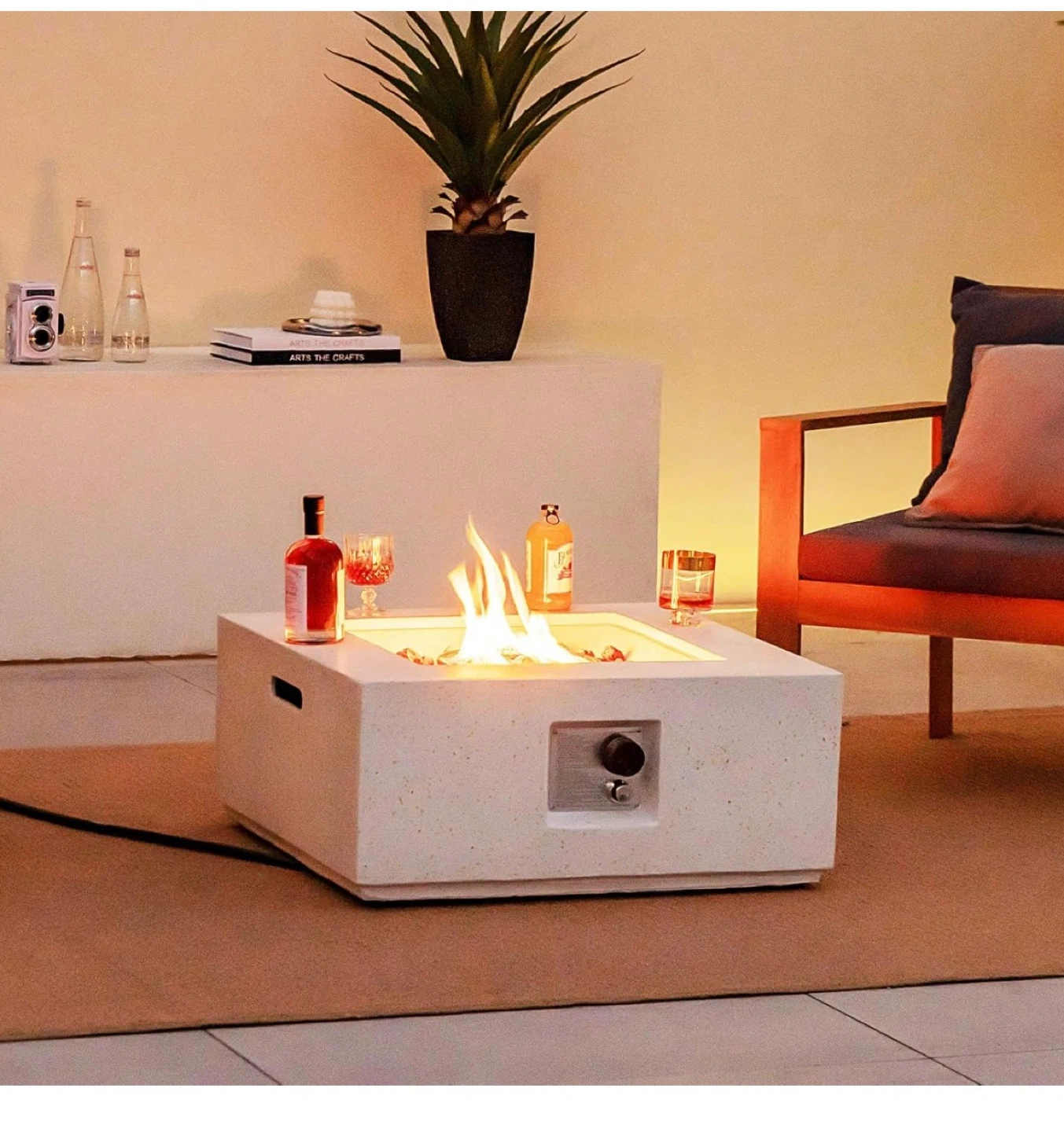 Premium outdoor fire pit table with durable terrazzo body and stainless steel burner. Produces strong heat and beautiful flame effect.