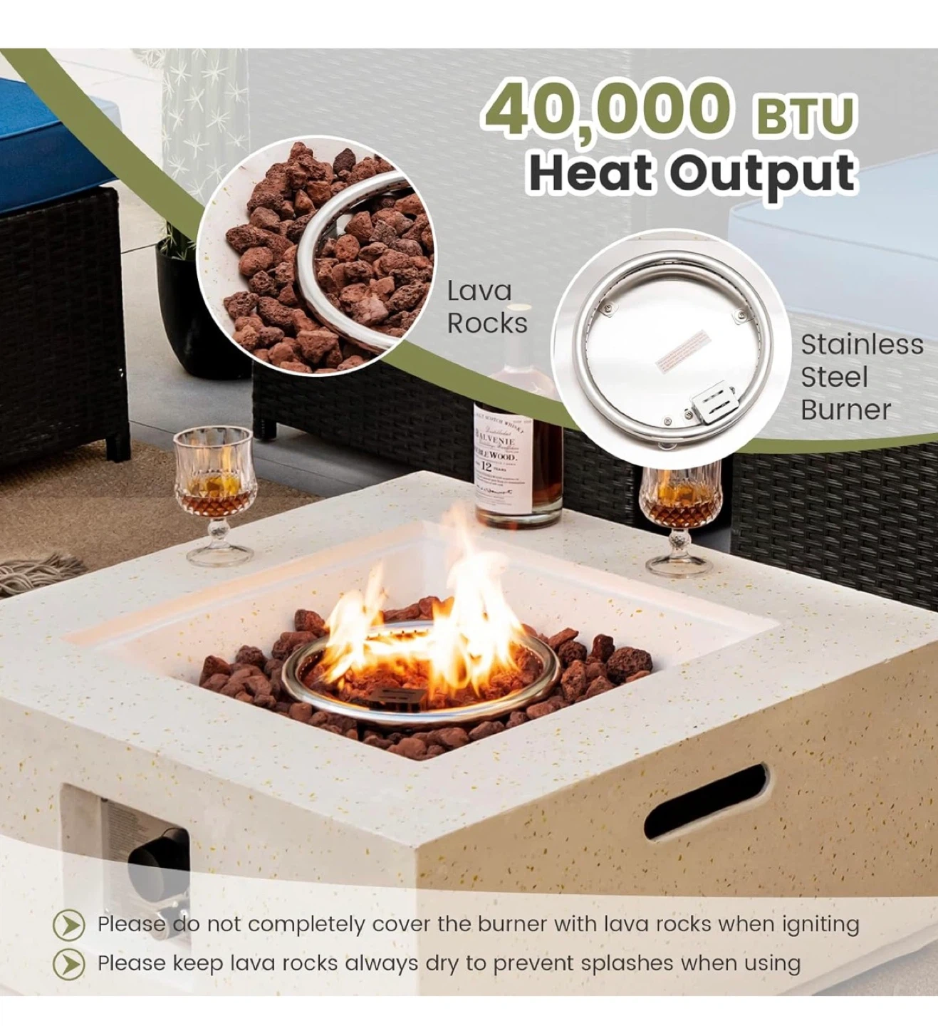 ✔ 40,000 BTU output