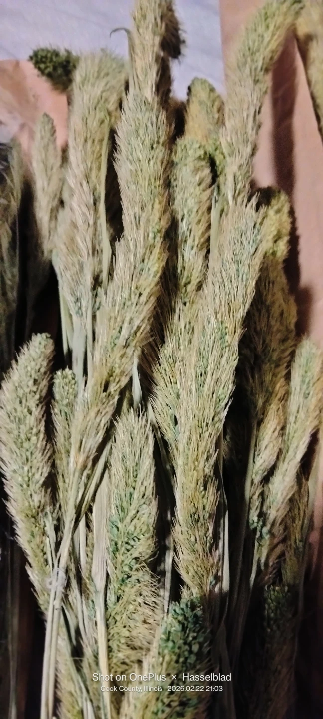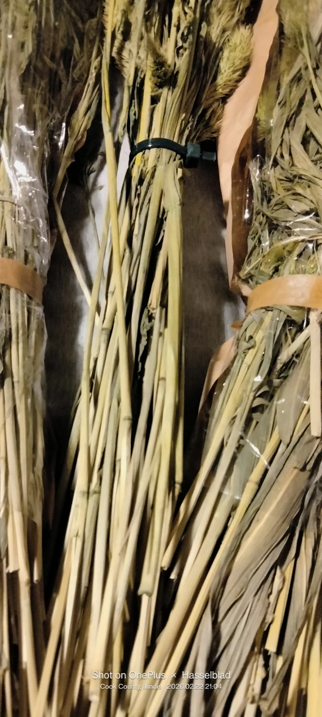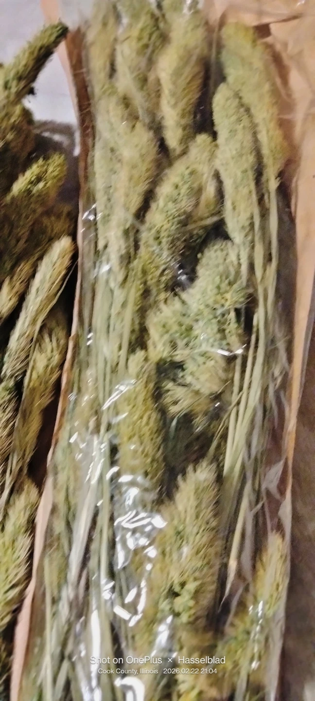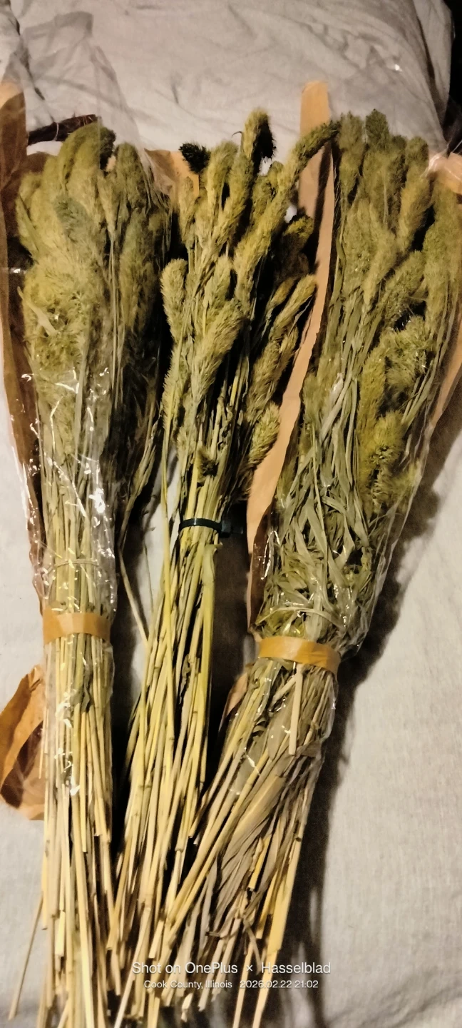 Three bundles of dried pampas grass. Each stem features a fluffy plume, perfect for decorative arrangements. These add a natural, bohemian touch to any space.New . 28"long.