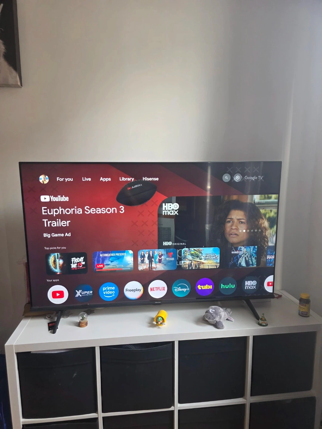 This is a Hisense 50-inch 4K UHD Smart TV. It runs on Google TV and includes HDR support. It's great for streaming your favorite shows and movies!