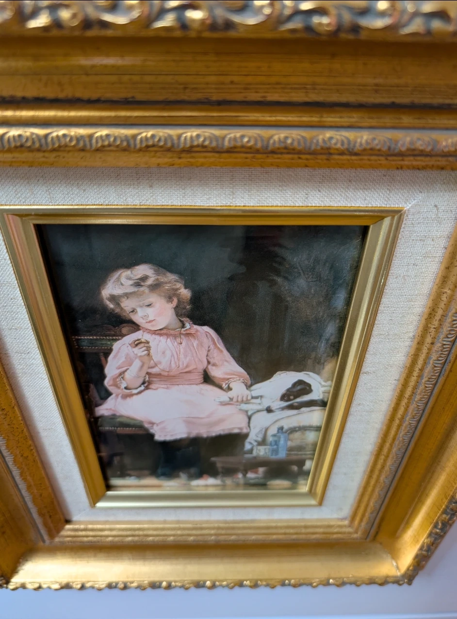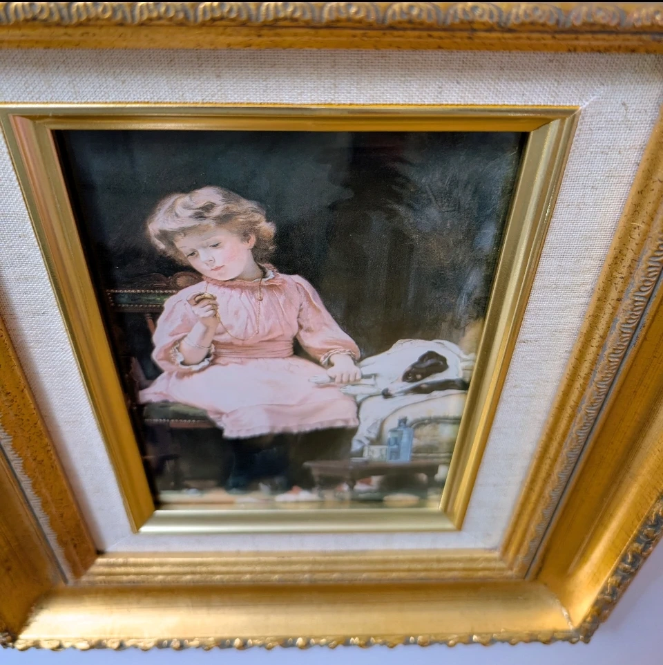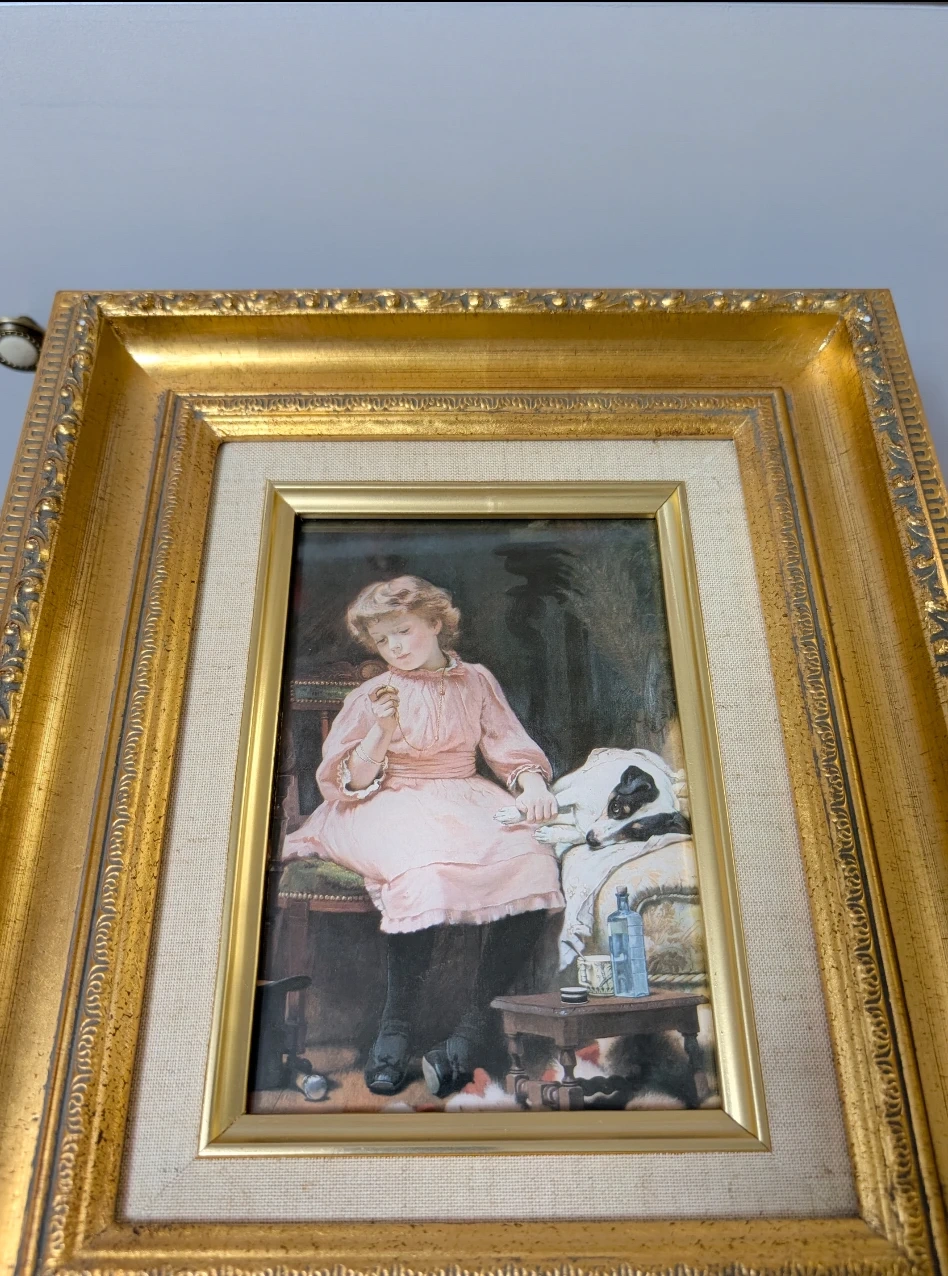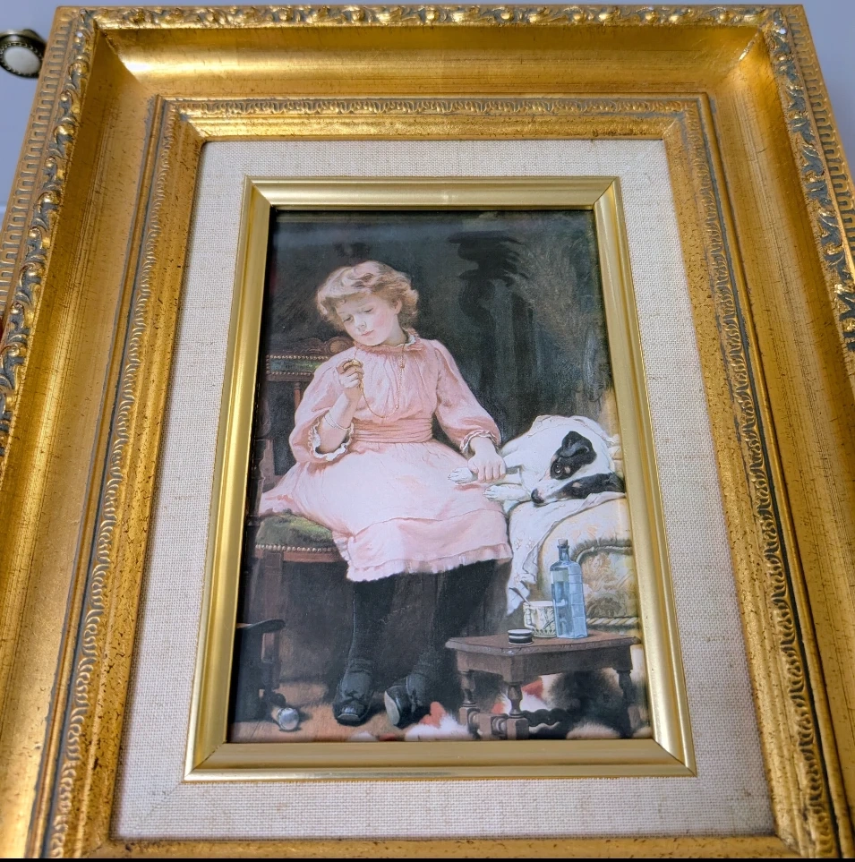 Charles Burton Barber Print “Not Much Wrong” Victorian Girl Vet & Terrier Dog
