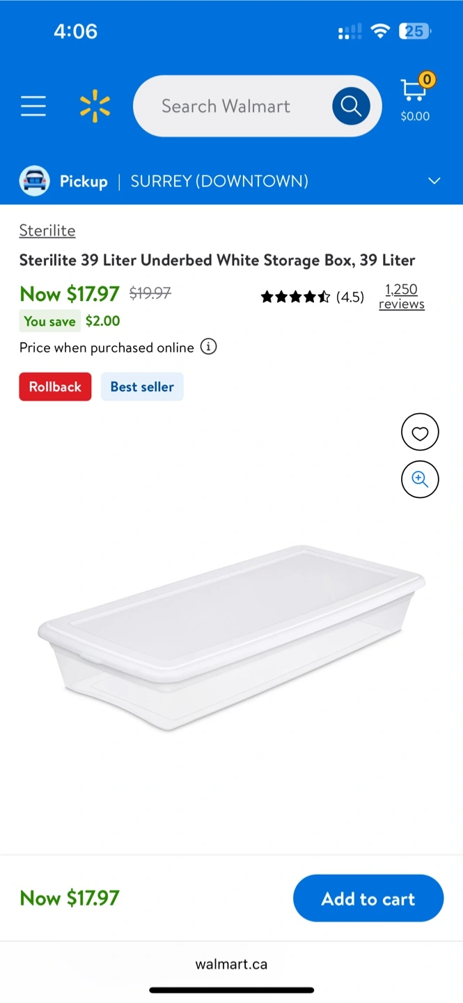 Sterilite 39 Liter Underbed Storage Box