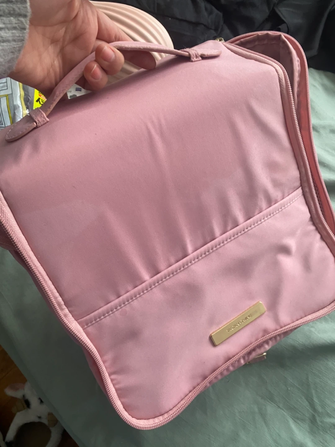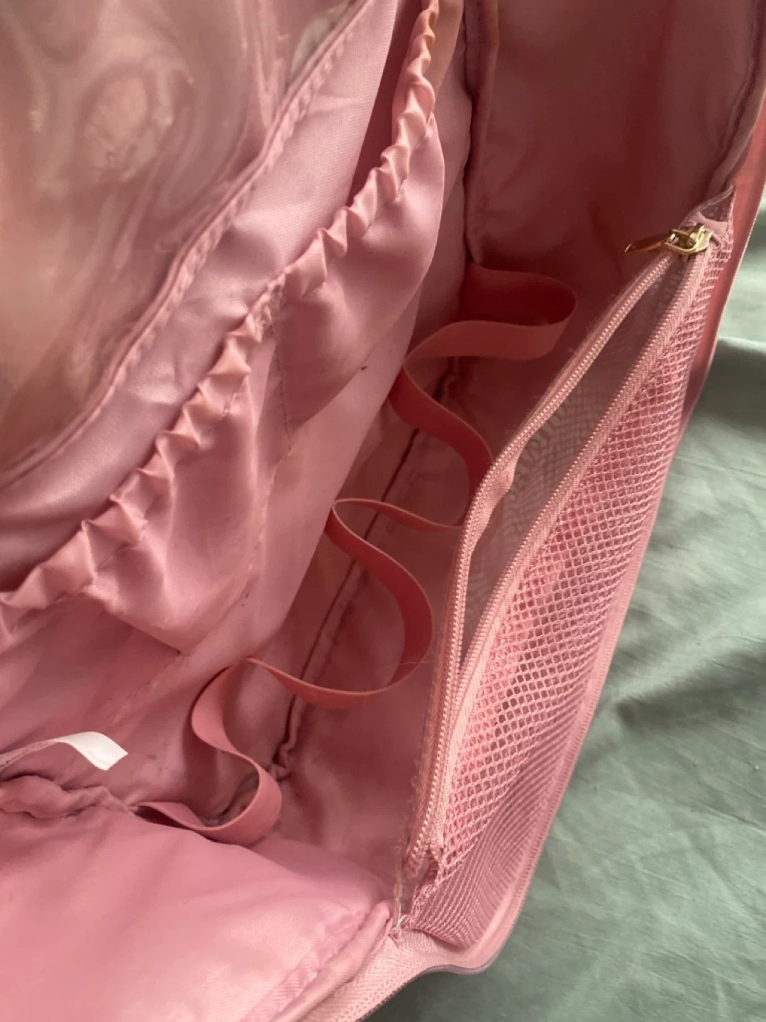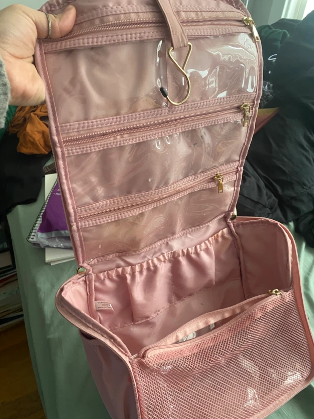 This pink travel toiletry bag is perfect for organizing your essentials on the go! It features multiple zippered compartments and elastic loops to keep everything tidy. The bag also includes a convenient hook for hanging.
