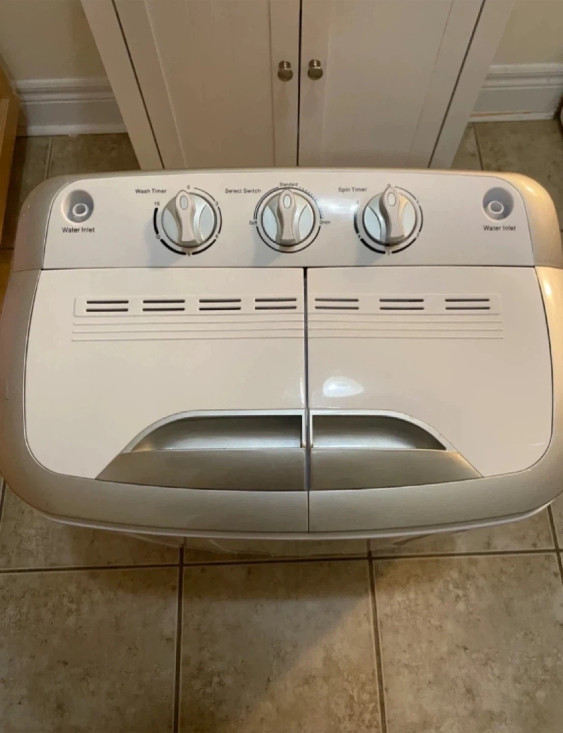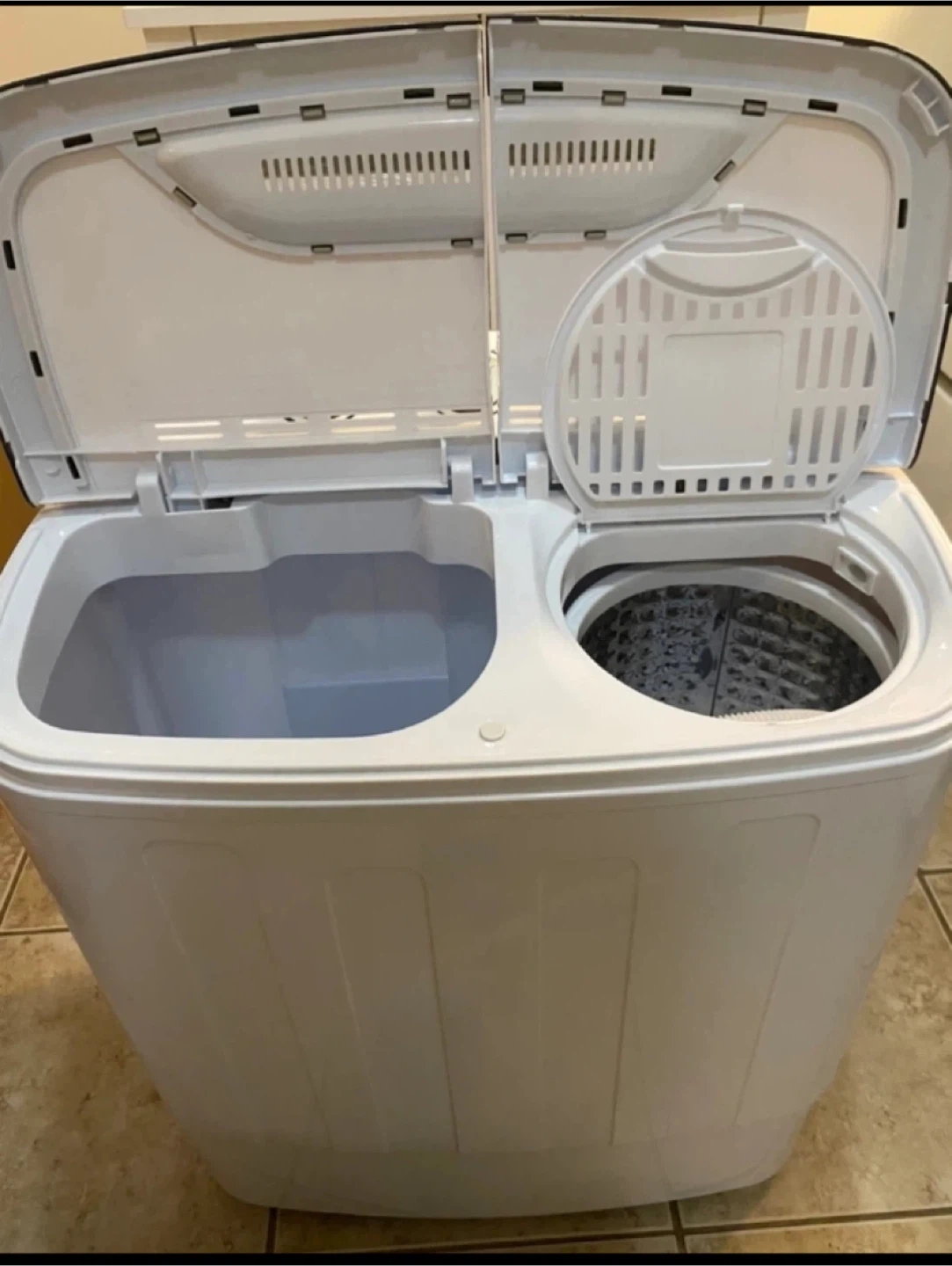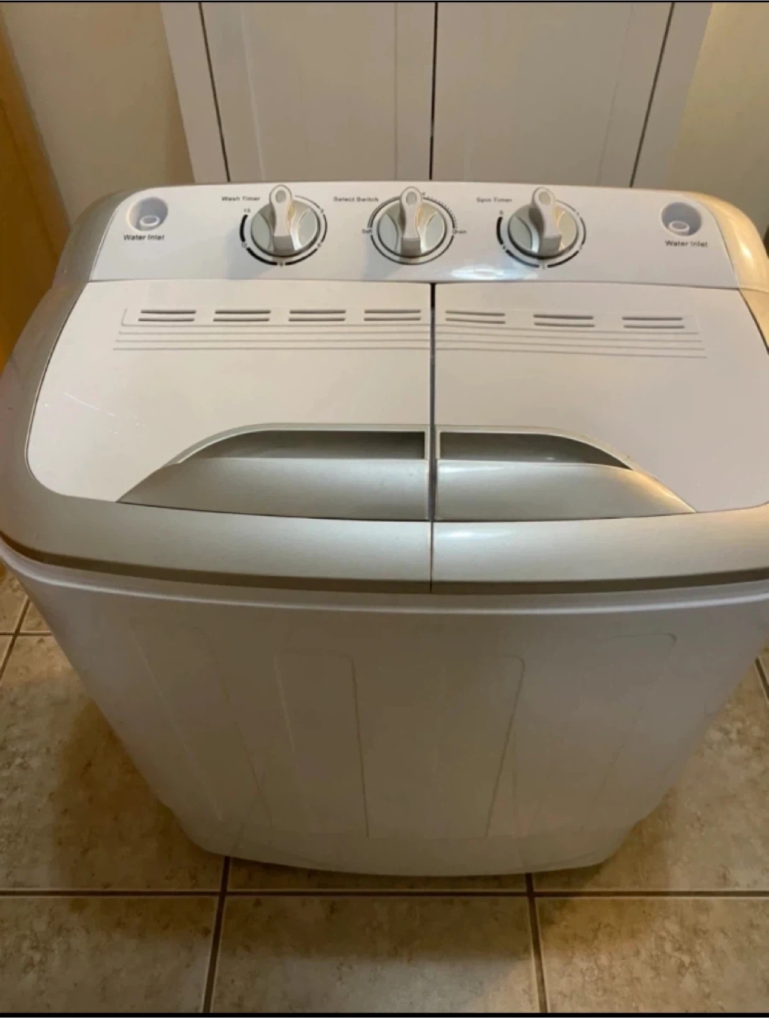 Selling a portable twin tub washing machine. It's in great condition and perfect for small spaces like apartments or RVs. It features separate wash and spin cycles, making laundry a breeze!