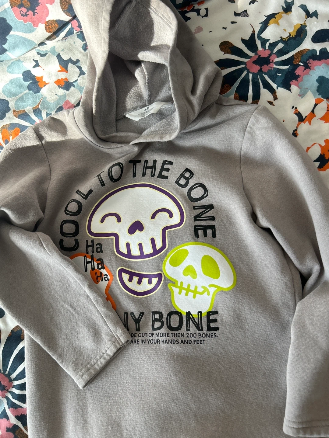Selling a cute H&M kids' set featuring a hoodie and sweatpants. The set is gray with a fun skull design. Perfect for a casual and playful look!