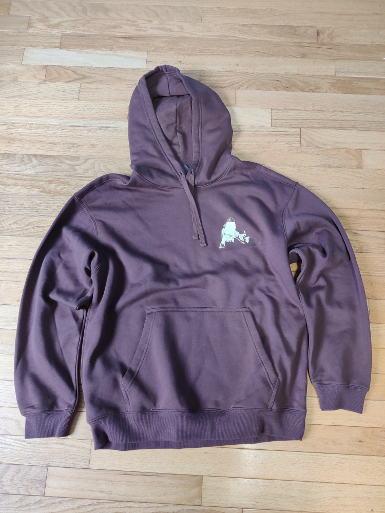Selling a never worn H&M loose fit hoodie in a lovely brown colour! The size is M. It has a unique design on the back.