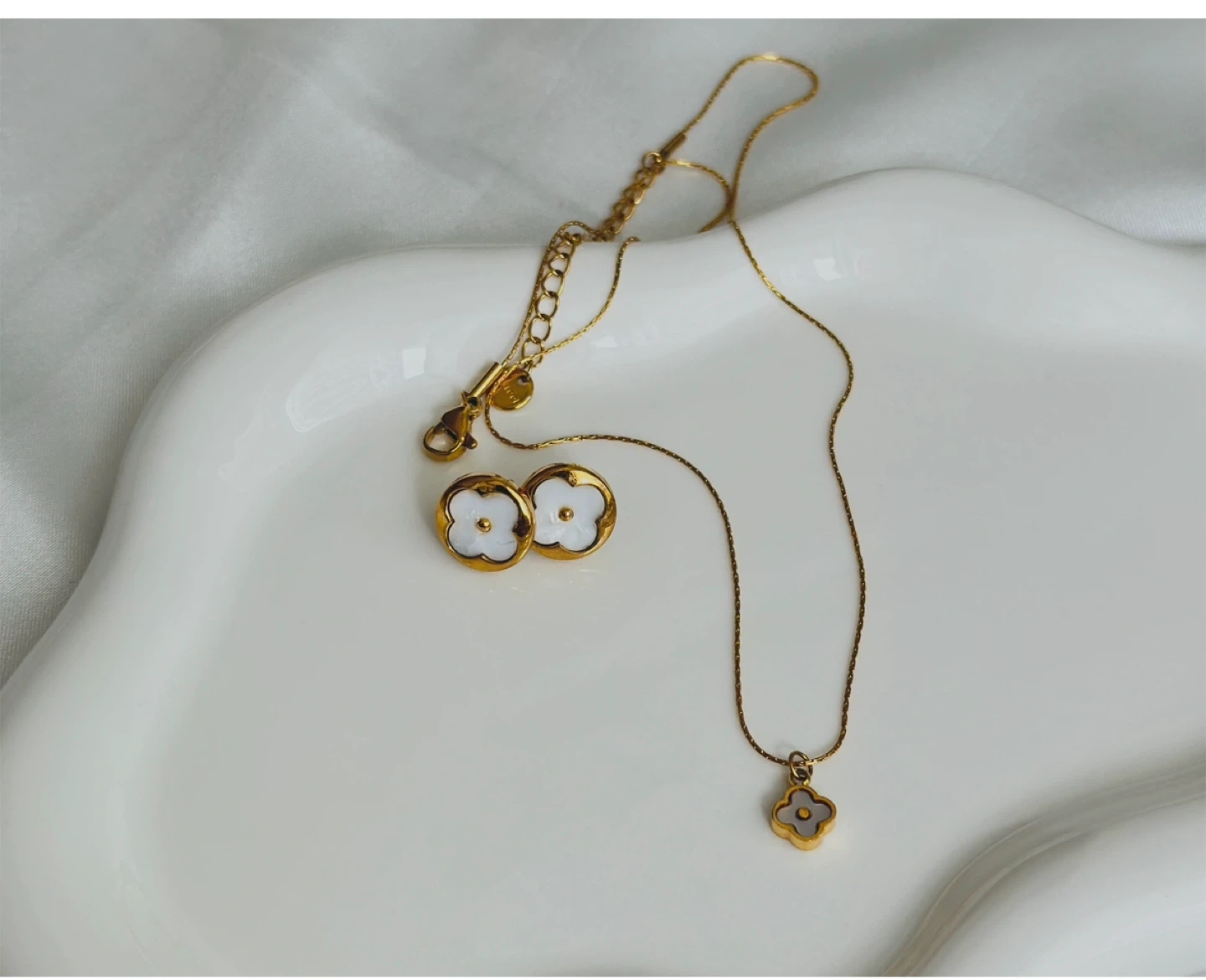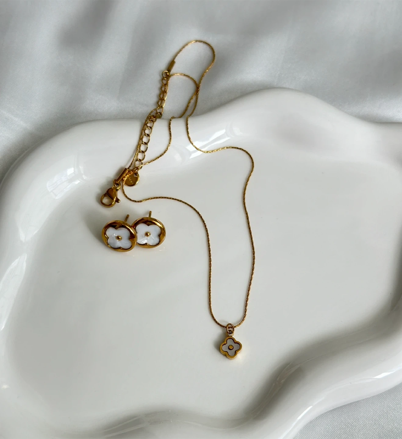 NEW ITEM - Cute gold necklace and earring set with a flower design!