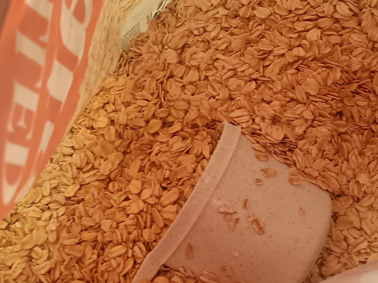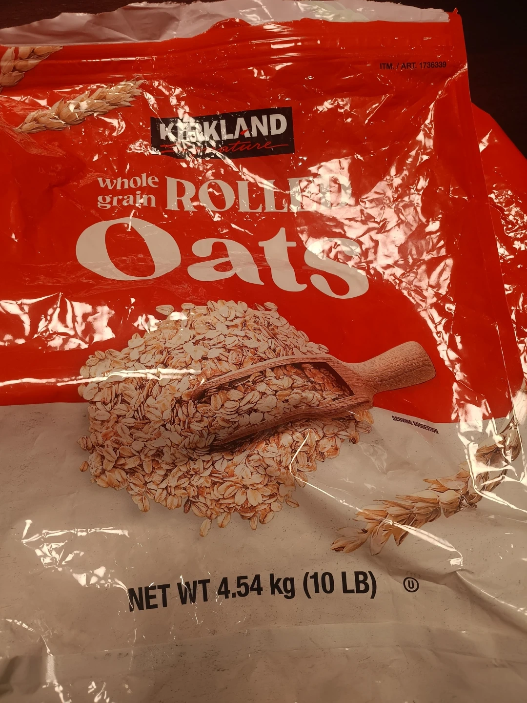 This is a 10 LB bag of Kirkland Signature whole grain rolled oats. They're a good source of fiber. Half of bag still available.
