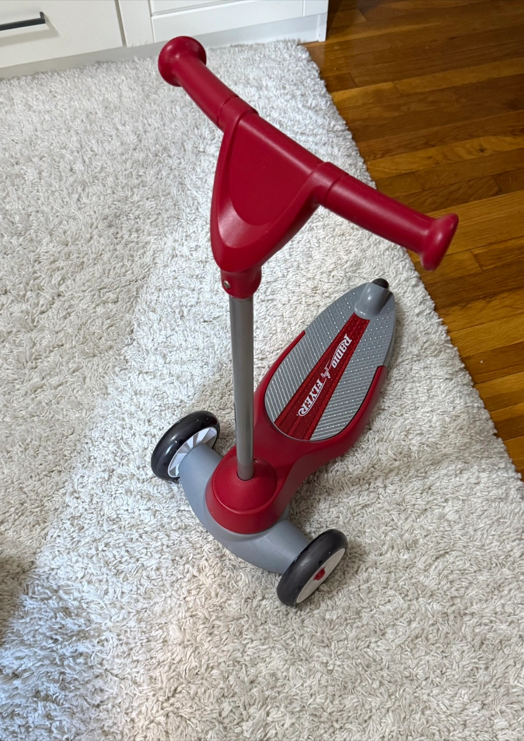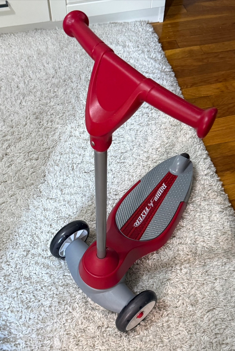 Selling a gently used Radio Flyer Lean 'N Glide Scooter. It's in great shape and ready for a new rider! This scooter is perfect for young kids learning to balance and coordinate. The lean-to-steer design helps develop those skills while providing a fun and stable ride