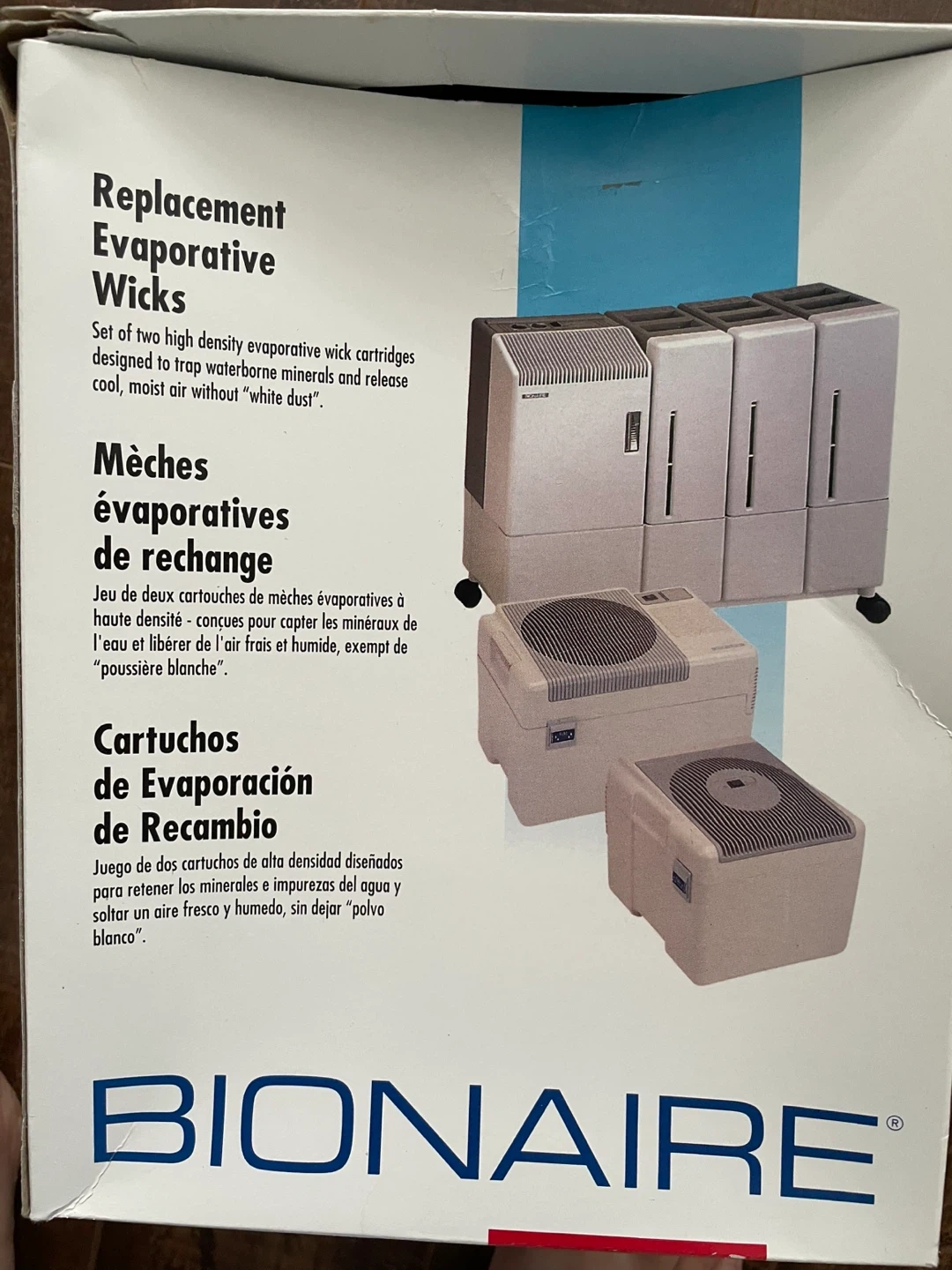 Room humidifier good condition. Comes with additional two high density evaporative wick cartridges. Designed to trap waterborne minerals and release cool, moist air without "white dust".