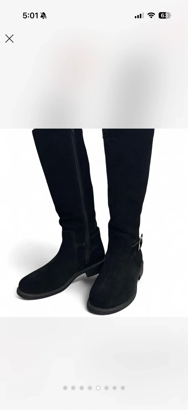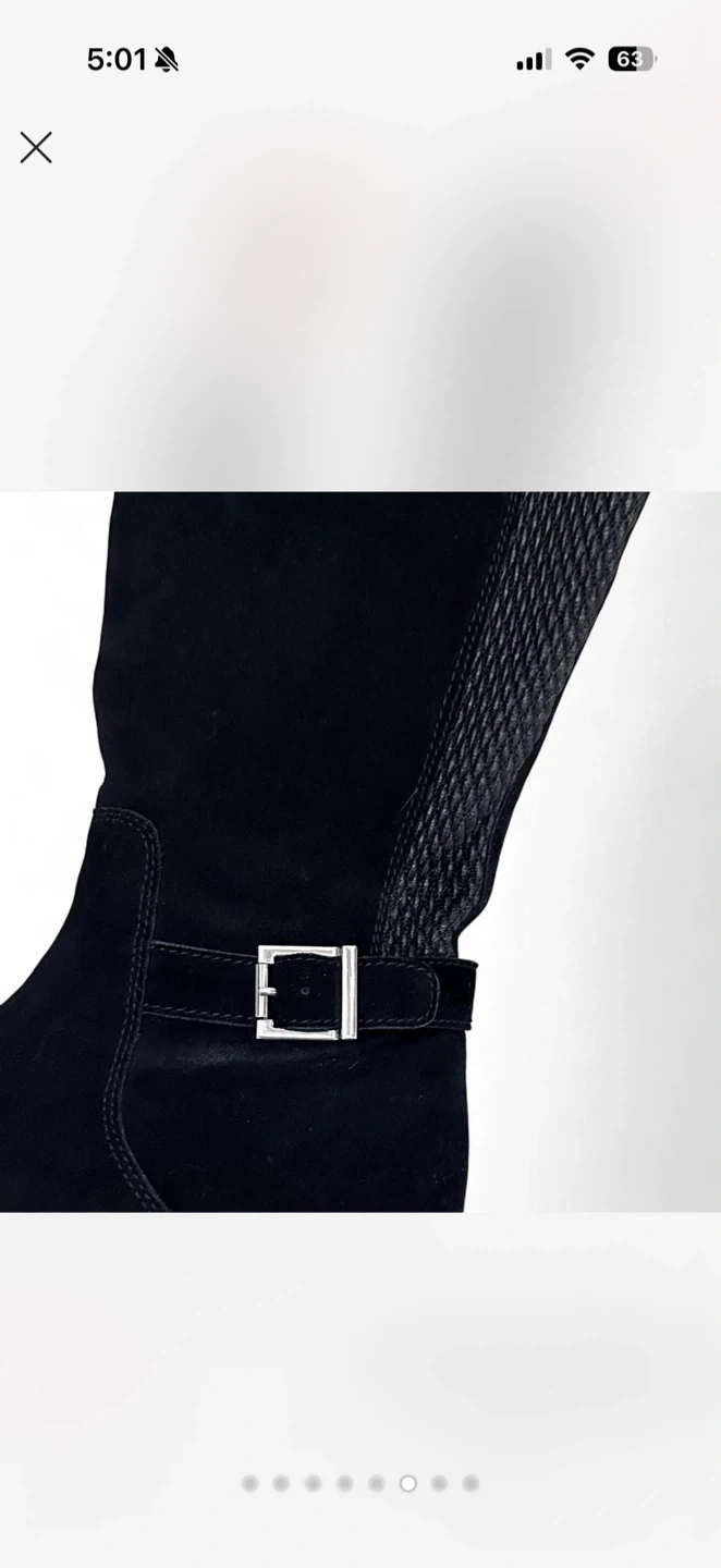 Black Suede Knee-High Boots with Buckle Detail