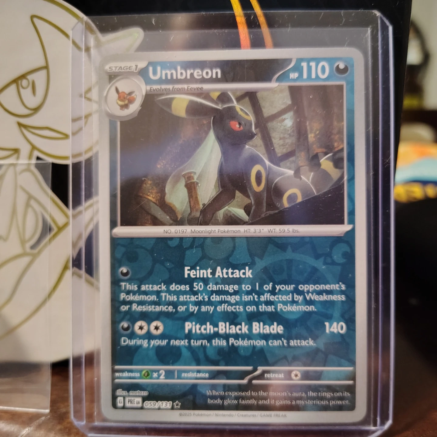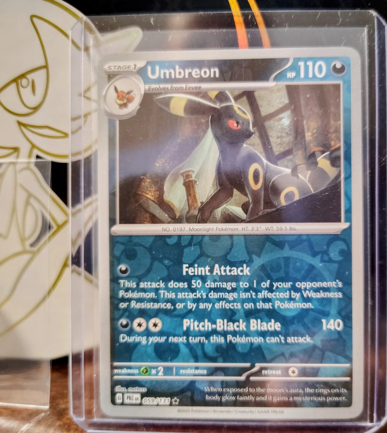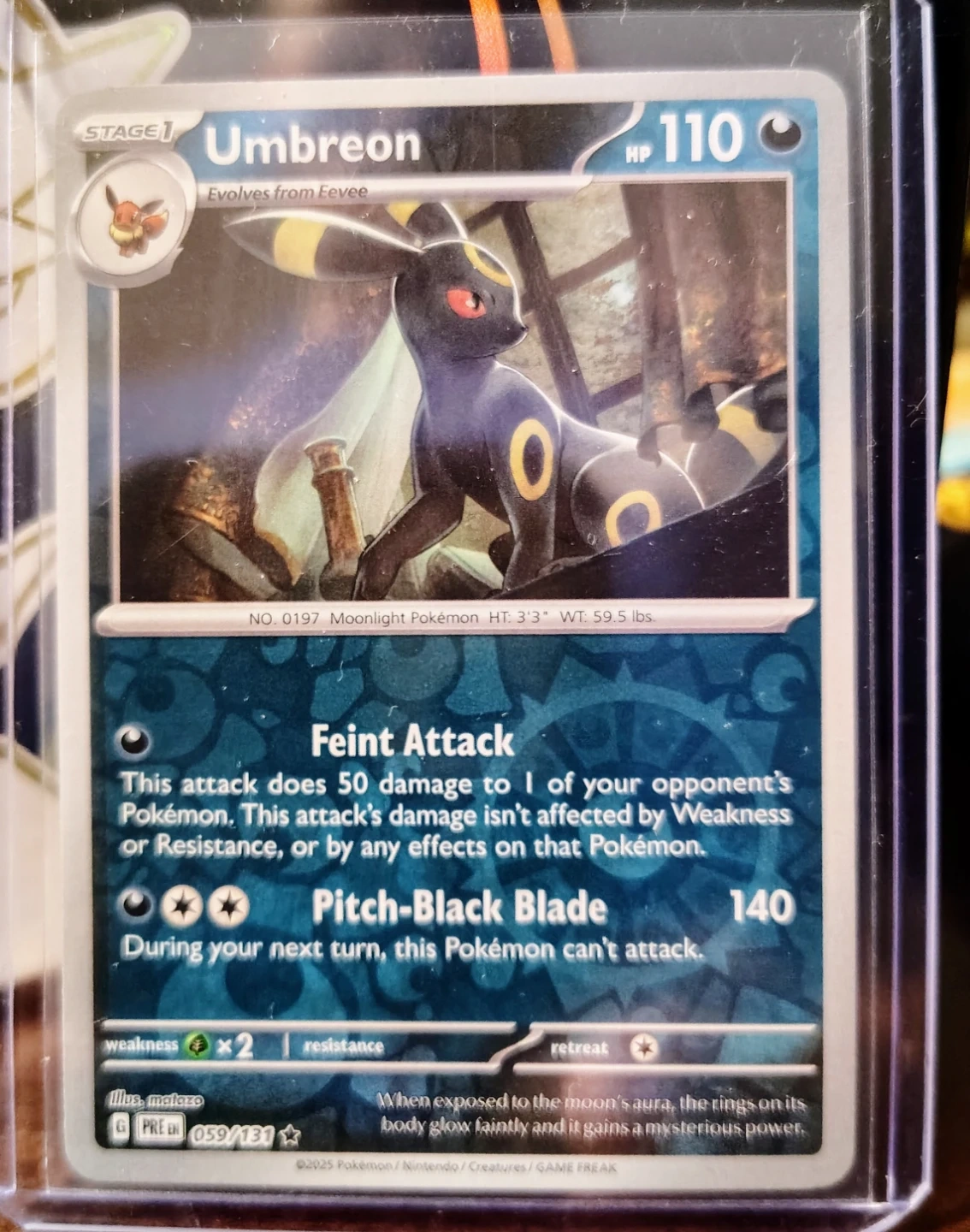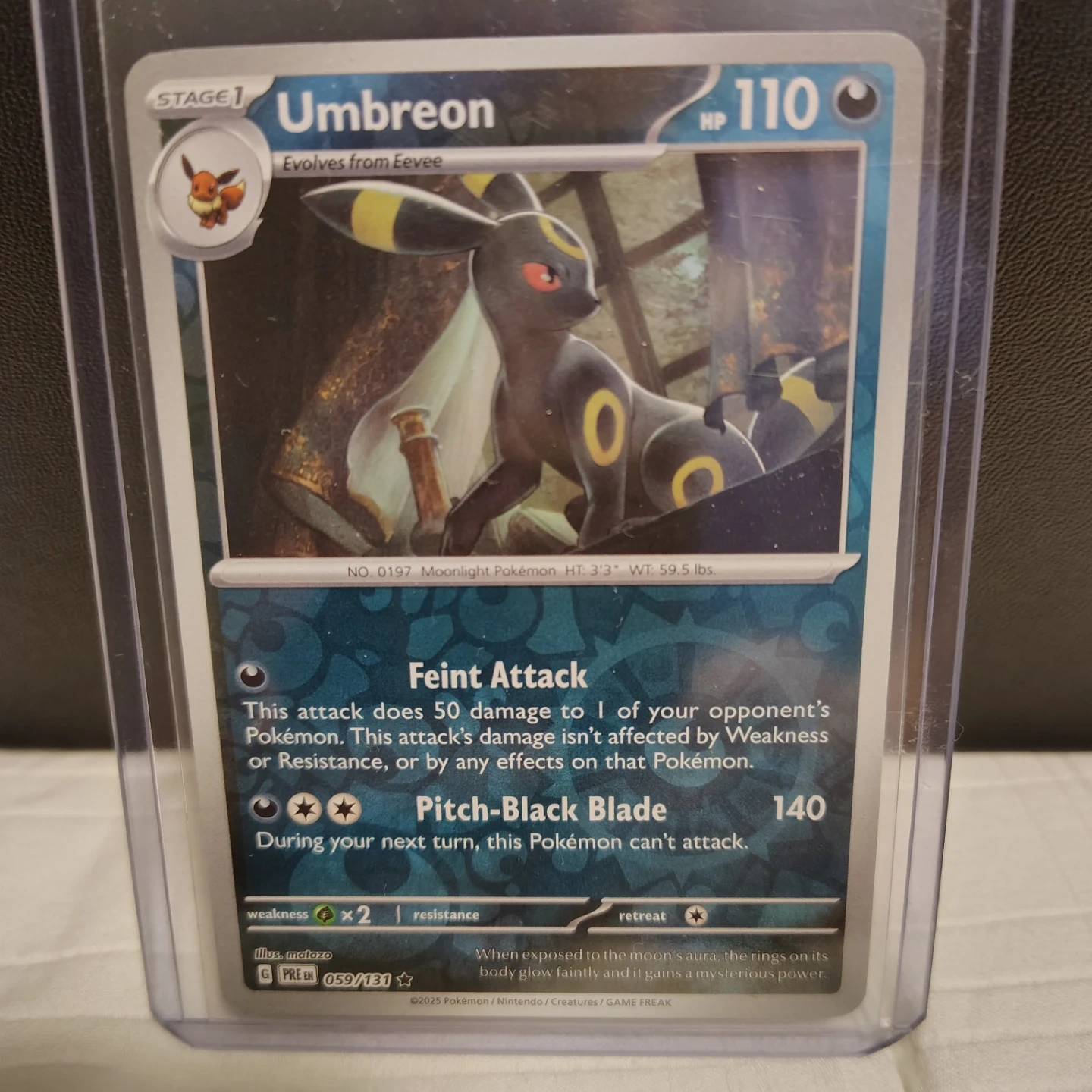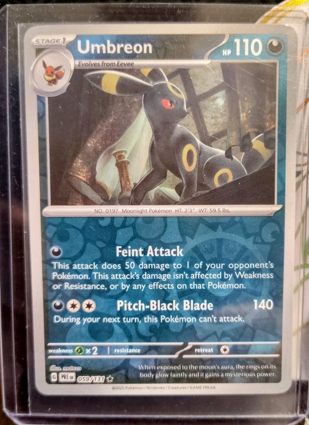 collectible Pokémon trading card, specifically the Umbreon card numbered 059/131 from the Prismatic Evolutions.
