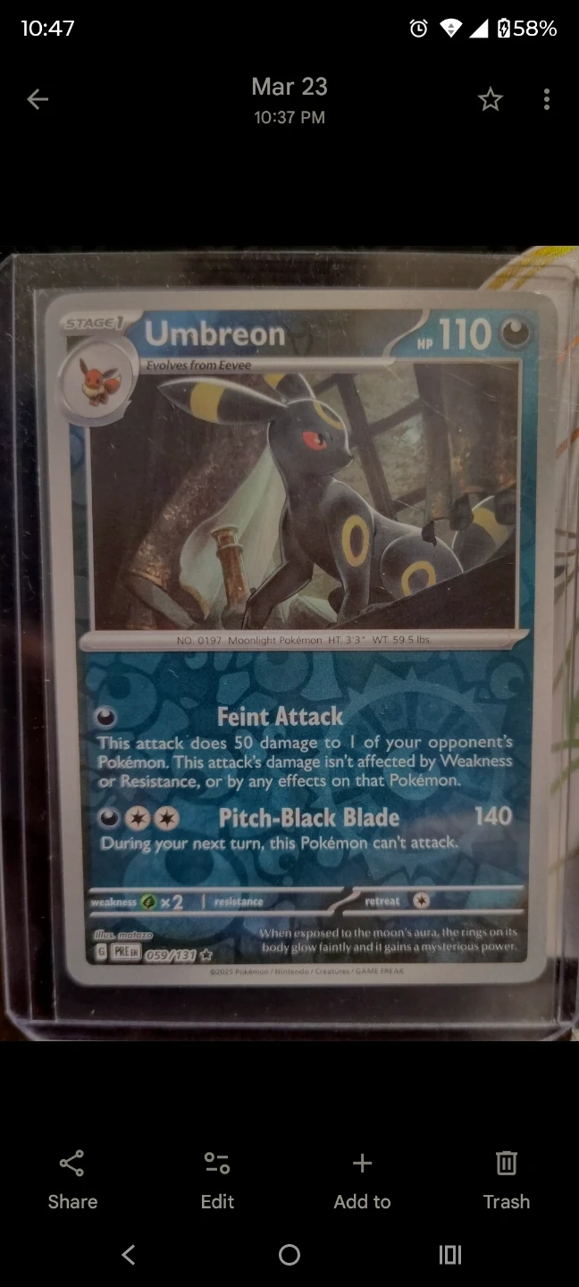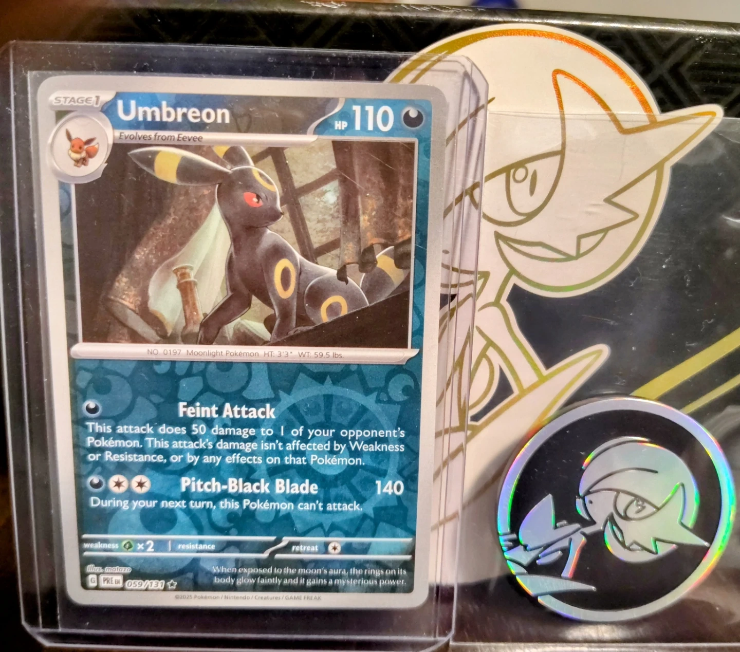 Card Details: This is a Stage 1 Dark-type Pokémon card featuring the character Umbreon with 110 HP.