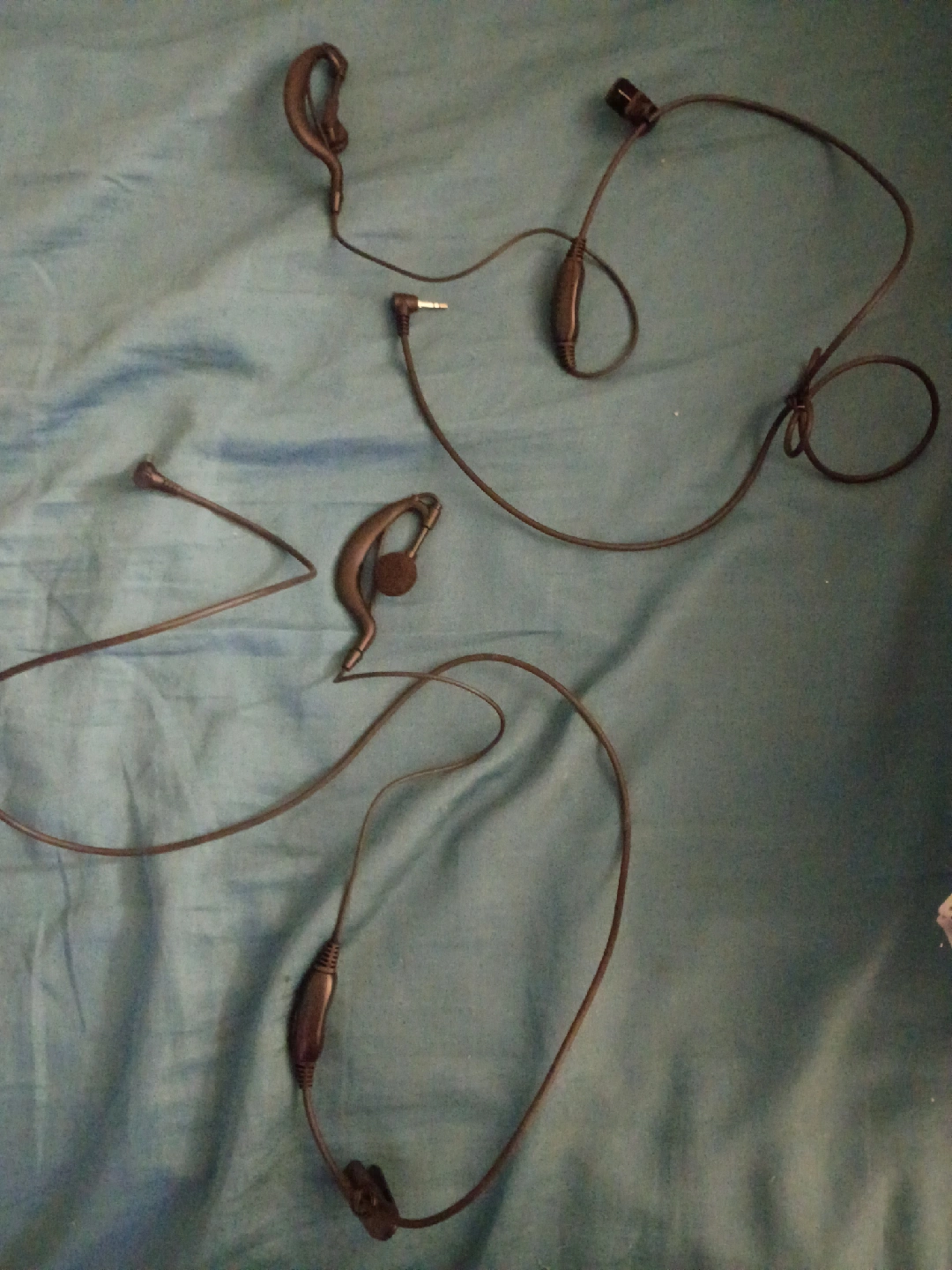 Selling a used ear hook headset. It has a standard headphone jack. set of 2