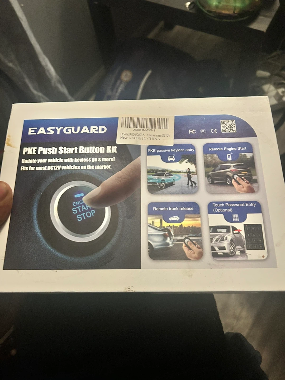 15Selling a brand new EASYGUARD PKE Push Start Button Kit! This kit updates your vehicle with keyless entry and fits most DC12V vehicles on the market. The box includes all components for installation, and it supports features like remote engine start, remote trunk release, and touch password entry (optional)