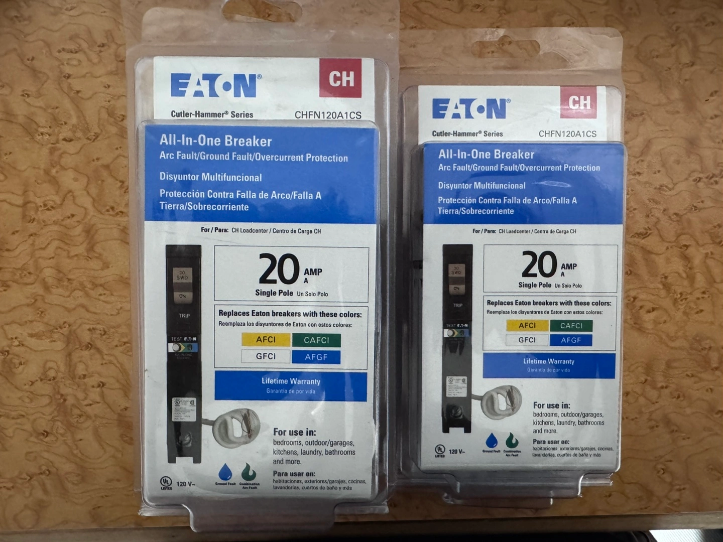 10Selling an Eaton Cutler-Hammer series all-in-one breaker. It provides arc fault, ground fault, and overcurrent protection. This is a 20 AMP single pole breaker. Great for use in bedrooms, outdoor garages, kitchens, laundry rooms, bathrooms and more