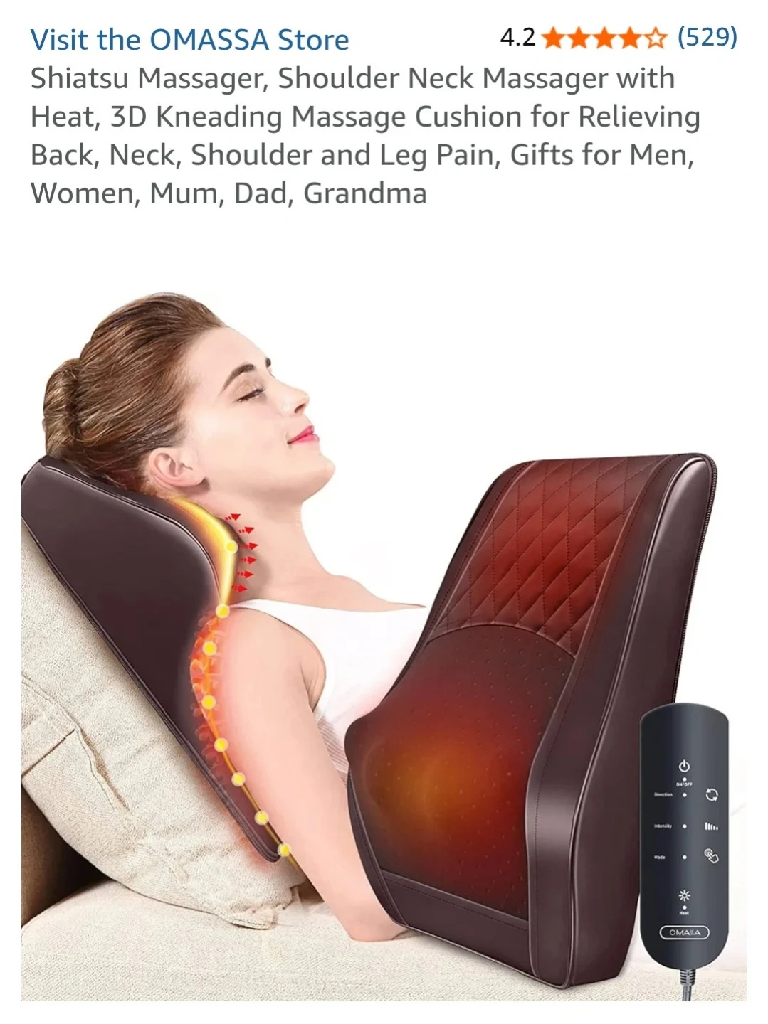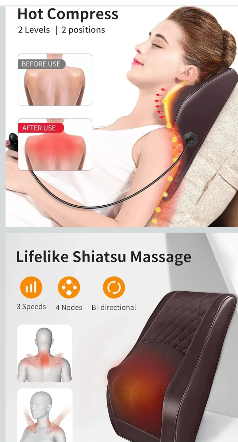 - Lifelike Shiatsu massage with 3 speeds, 4 nodes, and bi-directional movement