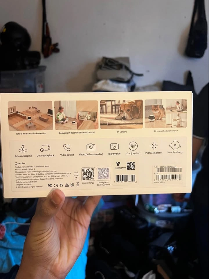 76New, just opened the box because it was a gift but the person didn’t like it so I’m selling it. It's completely new, just used to check if it was working. Comes with the charging station, 10-20w USB charger, user manual and official box, everything exactly as it came from the Amazon purchase. Includes the QR code for the EBO Home App to be able to use and install the Robot.