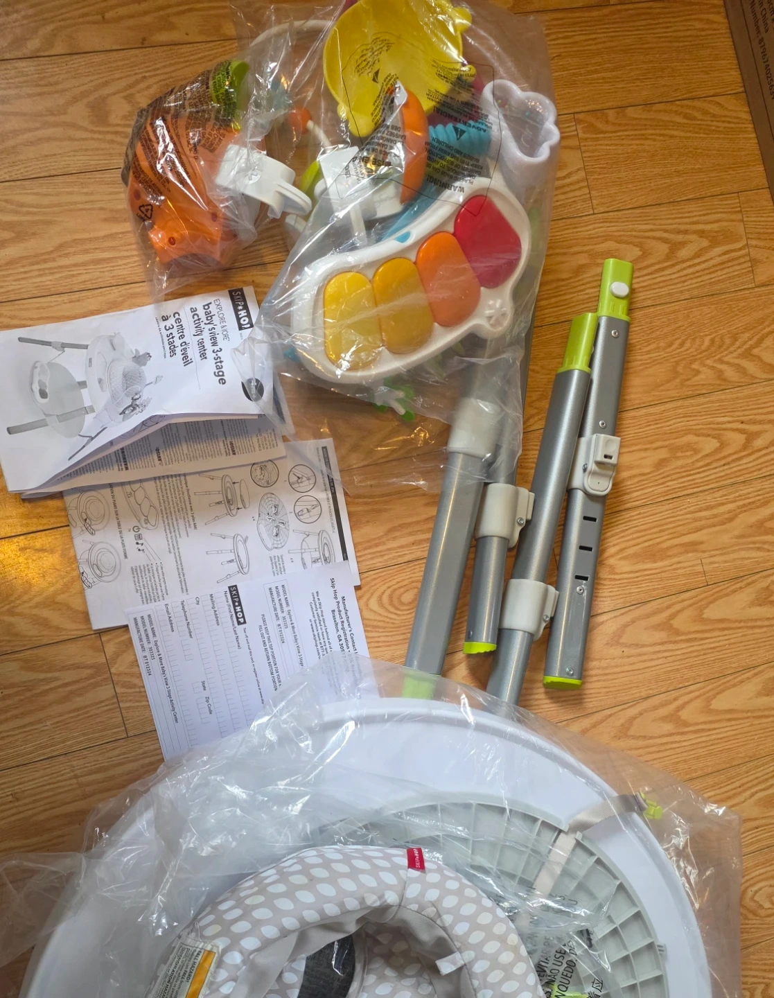 25+ Developmental Activities: activity center includes a musical, light-up piano with three modes (piano, song, and motion sensor), a peek-a-boo owl that pops out and hoots and clip-on toys that can be positioned based on your baby's abilities