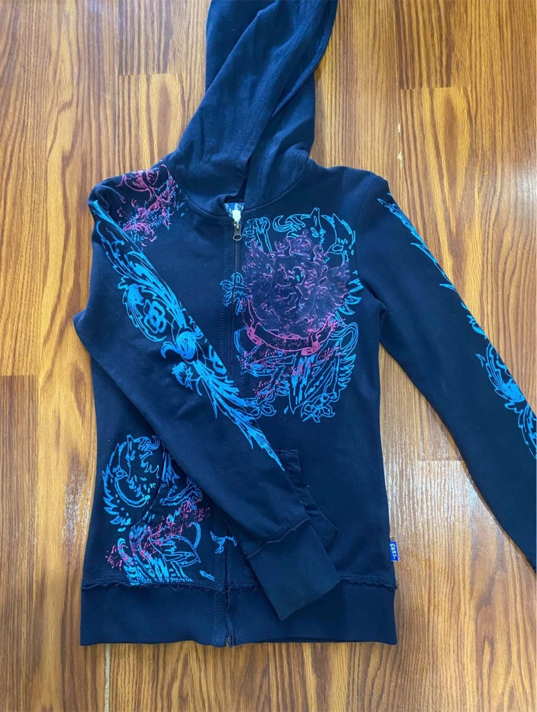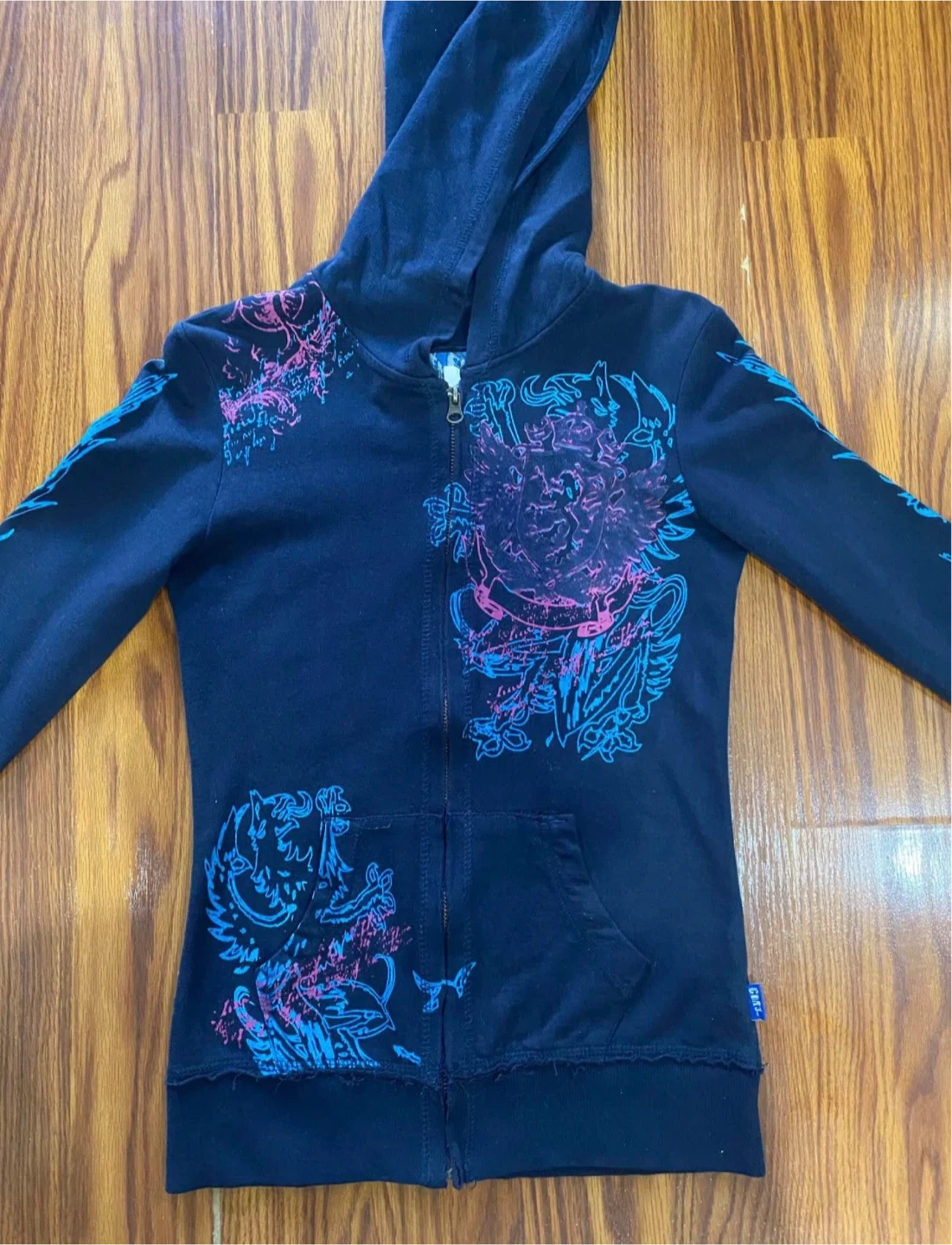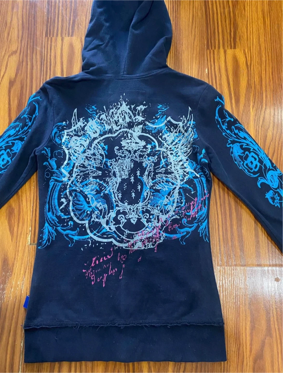 Here's a cute Ecko Unltd. blue hoodie! It has some cool designs on the front and back. It's in great condition and ready for a new home. In Like new condition, only used a couple times.
