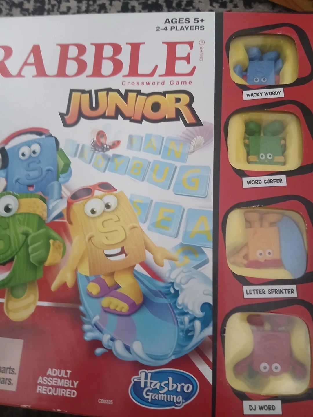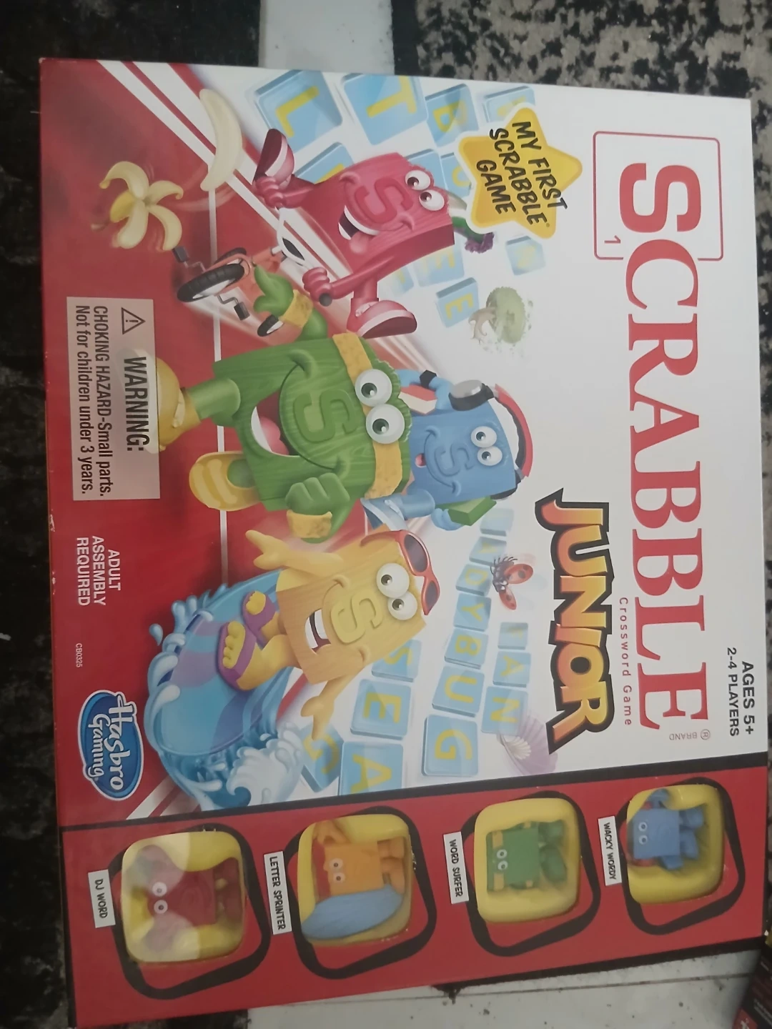 This is the Scrabble Junior Crossword Game by Hasbro. It's designed for ages 5 and up, supporting 2-4 players. It's a fun way to introduce kids to word building!